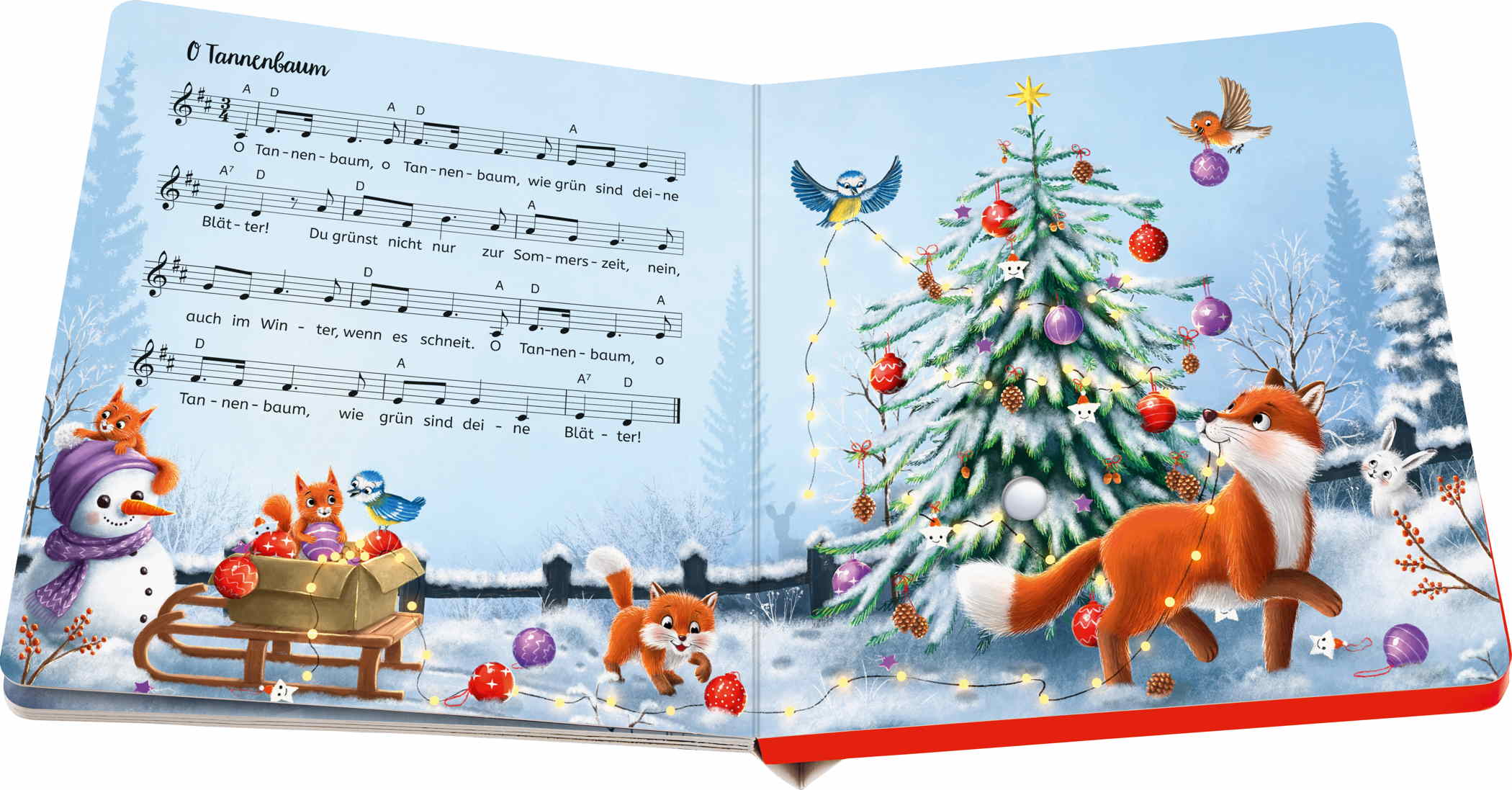 Ob allererste Weihnachtslieder wie „O Tannenbaum" oder der besinnliche Klassiker „Stille Nacht, heilige Nacht": Auf jeder Seite gibt es ein tolles Kinderlied zu hören.