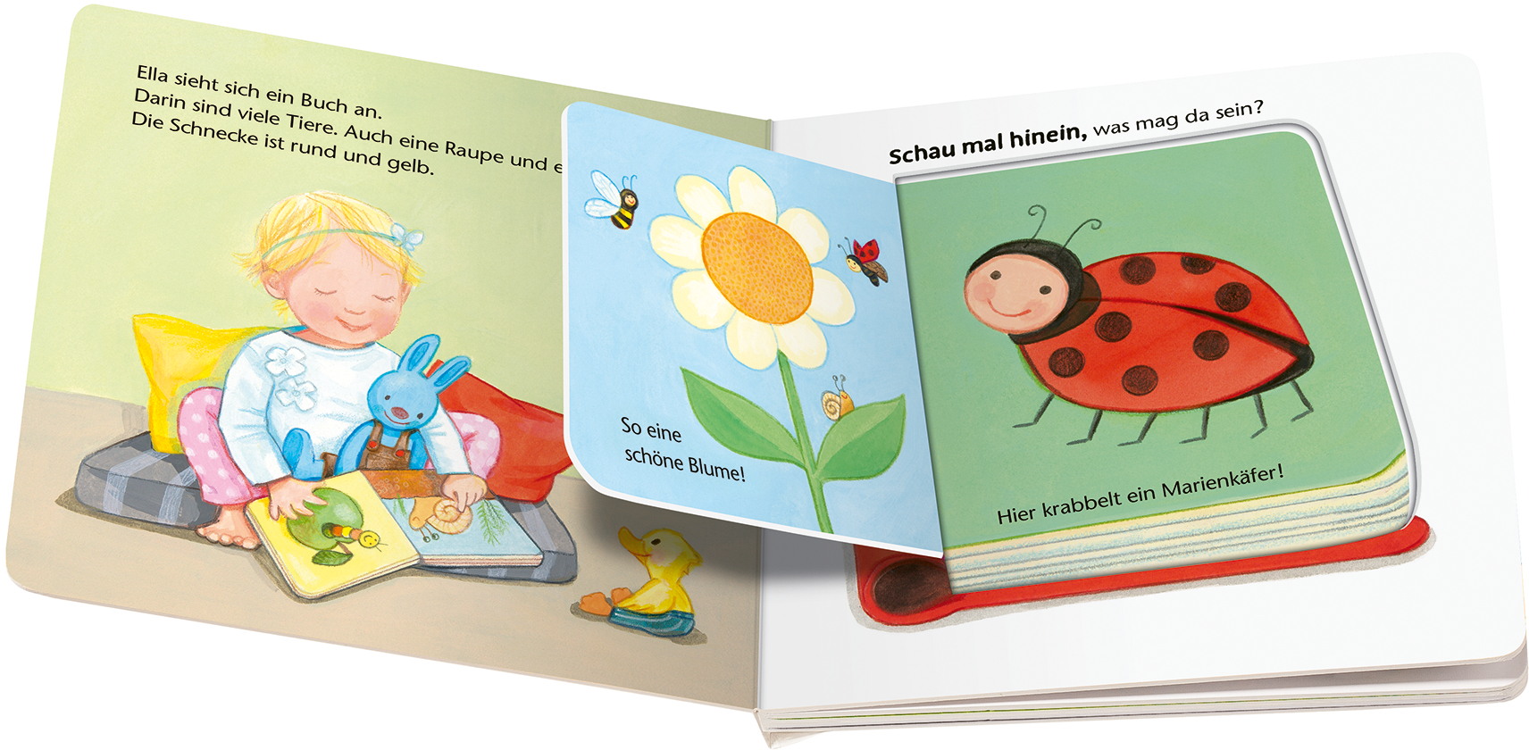 Die Klappen in diesem Pappbilderbuch sind extragroß und aus sehr stabilem Material. So können auch schon Kleinkinder ab einem Jahr die Klappen selbstständig öffnen und schließen, ohne dass diese kaputt gehen.