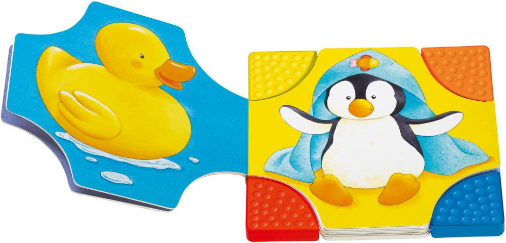 Mit diesem Buch darf geknabbert, gelutscht und gekaut werden. Die Ecken sind extra für Babys entwickelt worden, damit sie dieses Buch mit allen Sinnen erforschen können. Denn Babys entdecken in diesem Alter vor allem mit dem Mund! Teddybär, Banane, Mond oder Kuschelmaus: beim Betrachten der farbenfrohen Bilder schulen die Kleinen spielerisch ihre Wahrnehmung und lernen ganz nebenbei Sprechen.