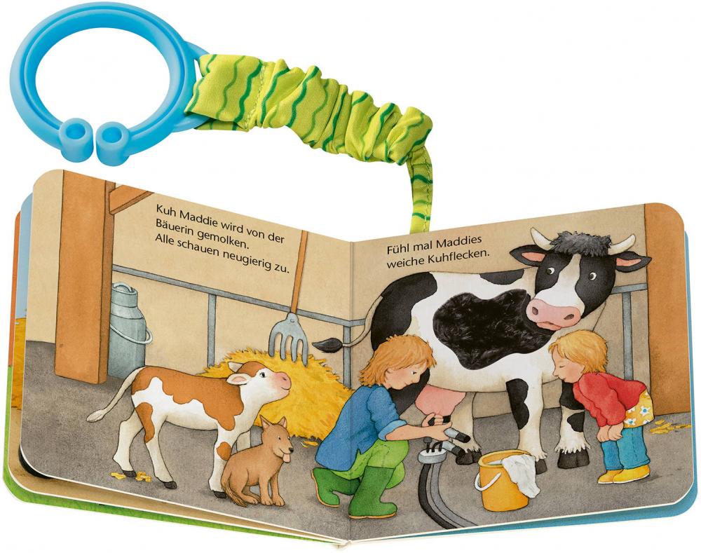Ferkel, Kuh und Hahn: in diesem Spielbuch können Kinder ab 6 Monaten ihre liebsten Bauernhoftiere streicheln und anfassen. Die kurzen Texte und die Fühlteile animieren dabei zum aktiven Mitmachen.