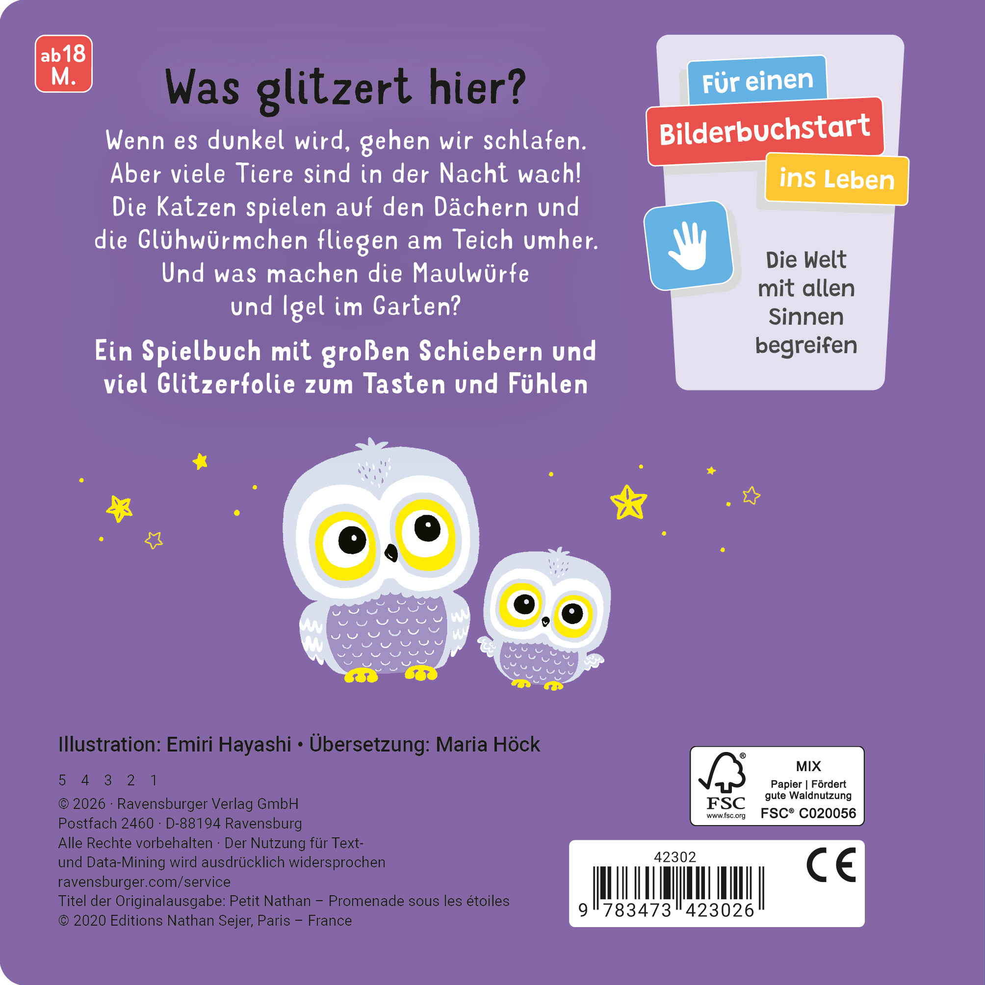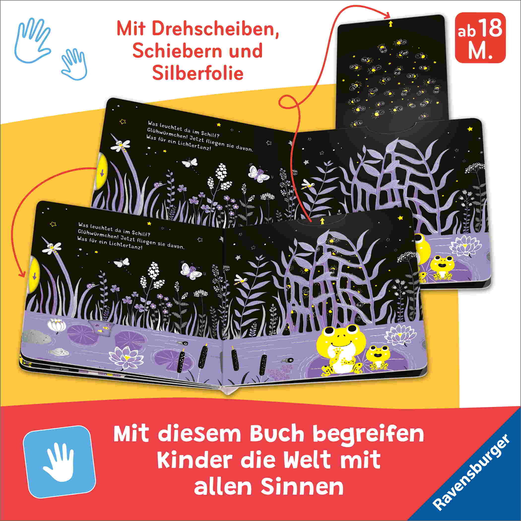 Zusätzlich gibt es zahlreiche Stellen in den Illustrationen, die mit funkelnder Silberfolie verziert sind und mit dem Finger ertastet werden.