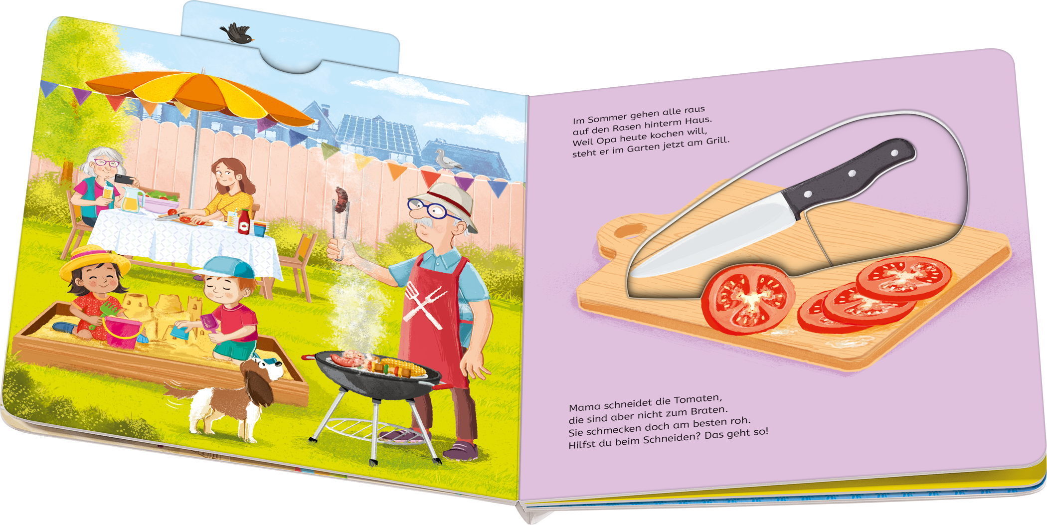 - Zuhause kann es manchmal laut werden. Bewege die Trommel der Waschmaschine, reiße das Klopapier ab und schneide die Tomaten in Scheiben.