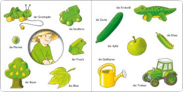 Mit diesem Gucklochbuch erkunden Kinder ab 9 Monaten spielerisch die Welt der Farben. Die Gucklöcher machen neugierig und laden zum Vor- und Zurückblättern ein. Die Benennung der einzelnen Gegenstände unterstützten die Kleinsten zudem beim Wortschatzerwerb.