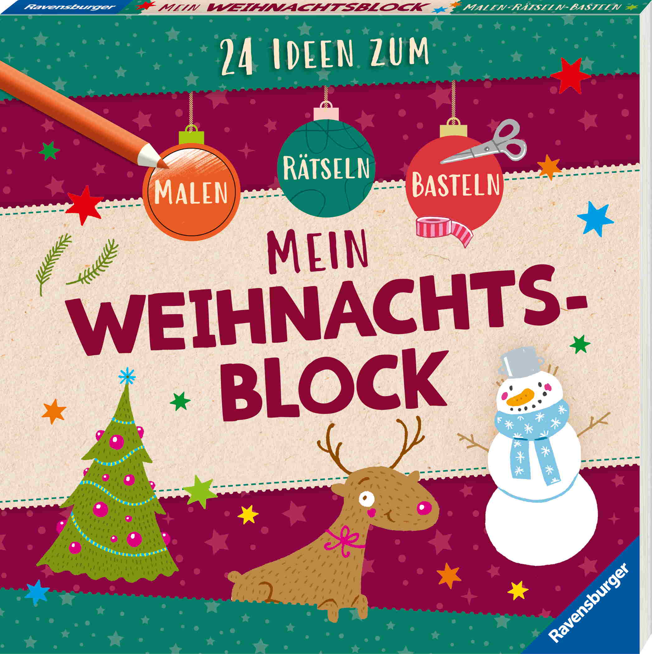 Ravensburger Buch Kreativität Mein Weihnachtsblock 24 Ideen zum Malen, Basteln, Rätseln 48833
