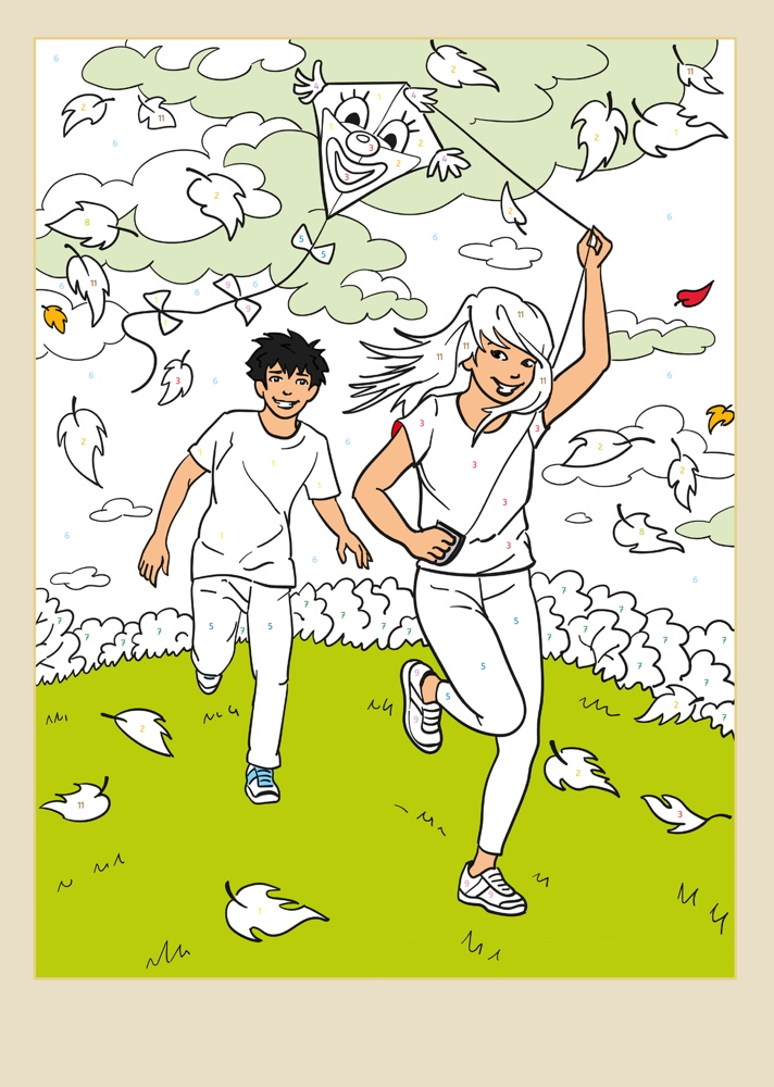 Alle Ausmalfelder enthalten Zahlen, die die Farben vorgeben