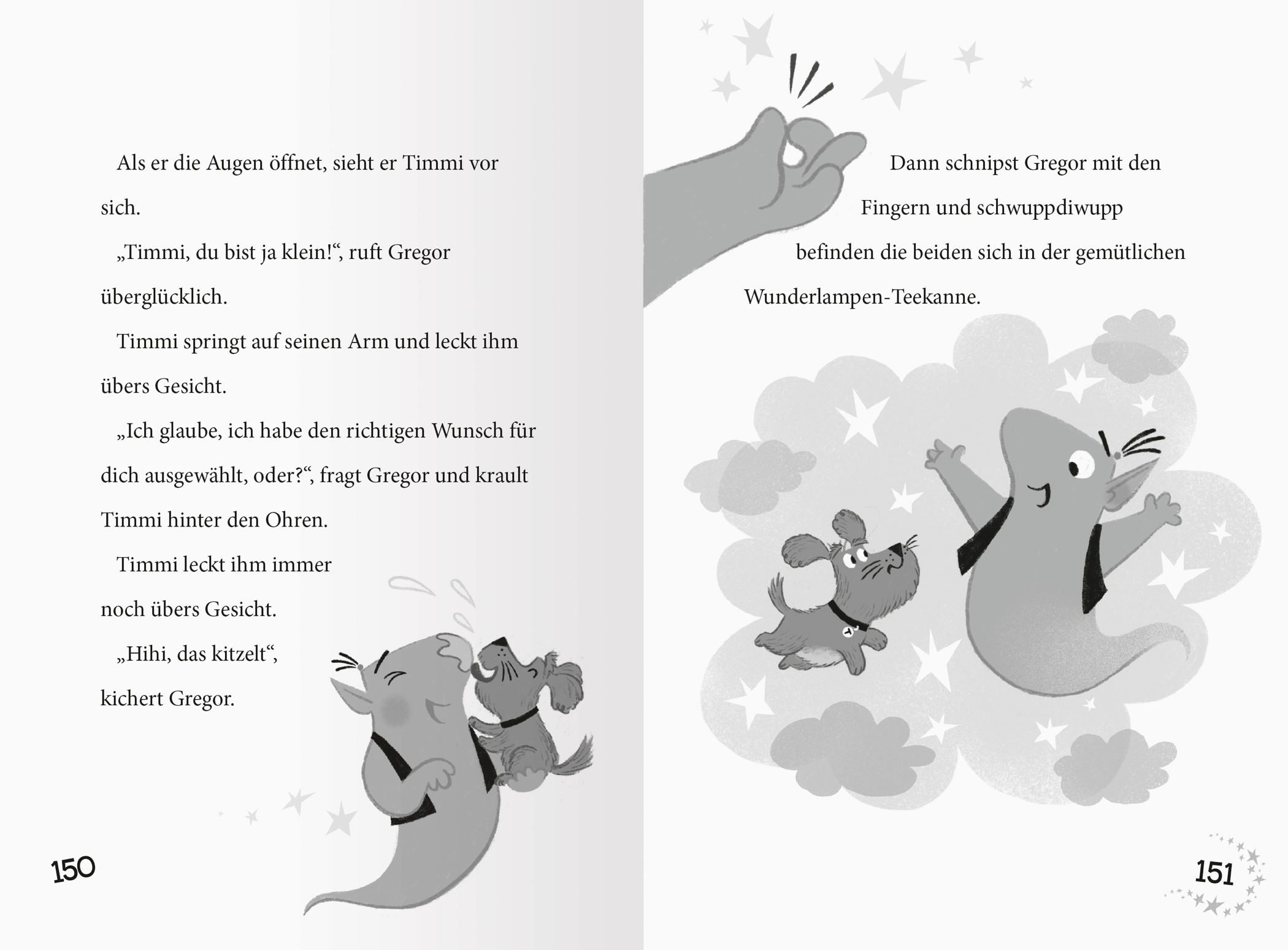 Seit Hund Timmi und Flaschengeist Gregor sich zufällig kennengelernt haben, stolpern die beiden von einem Wunsch-Wirbel ins nächste Wunder-Chaos. Denn Gregor muss das Zaubern noch ein bisschen üben. Aus Versehen zaubert er nie das, was man sich wirklich wünscht, sondern meistens das, was man gerade überhaupt nicht braucht. Und so bringt er Timmi und sich immer wieder in heikle Situationen.