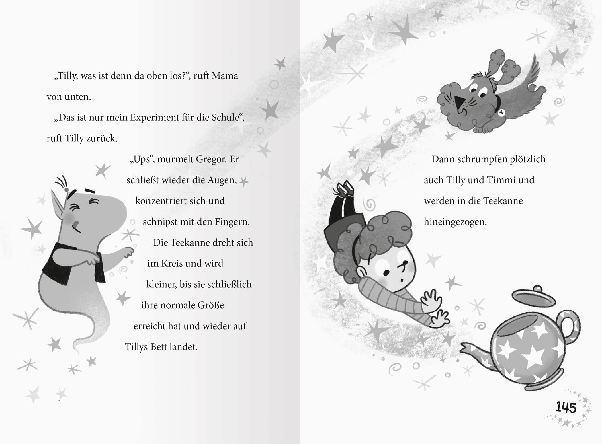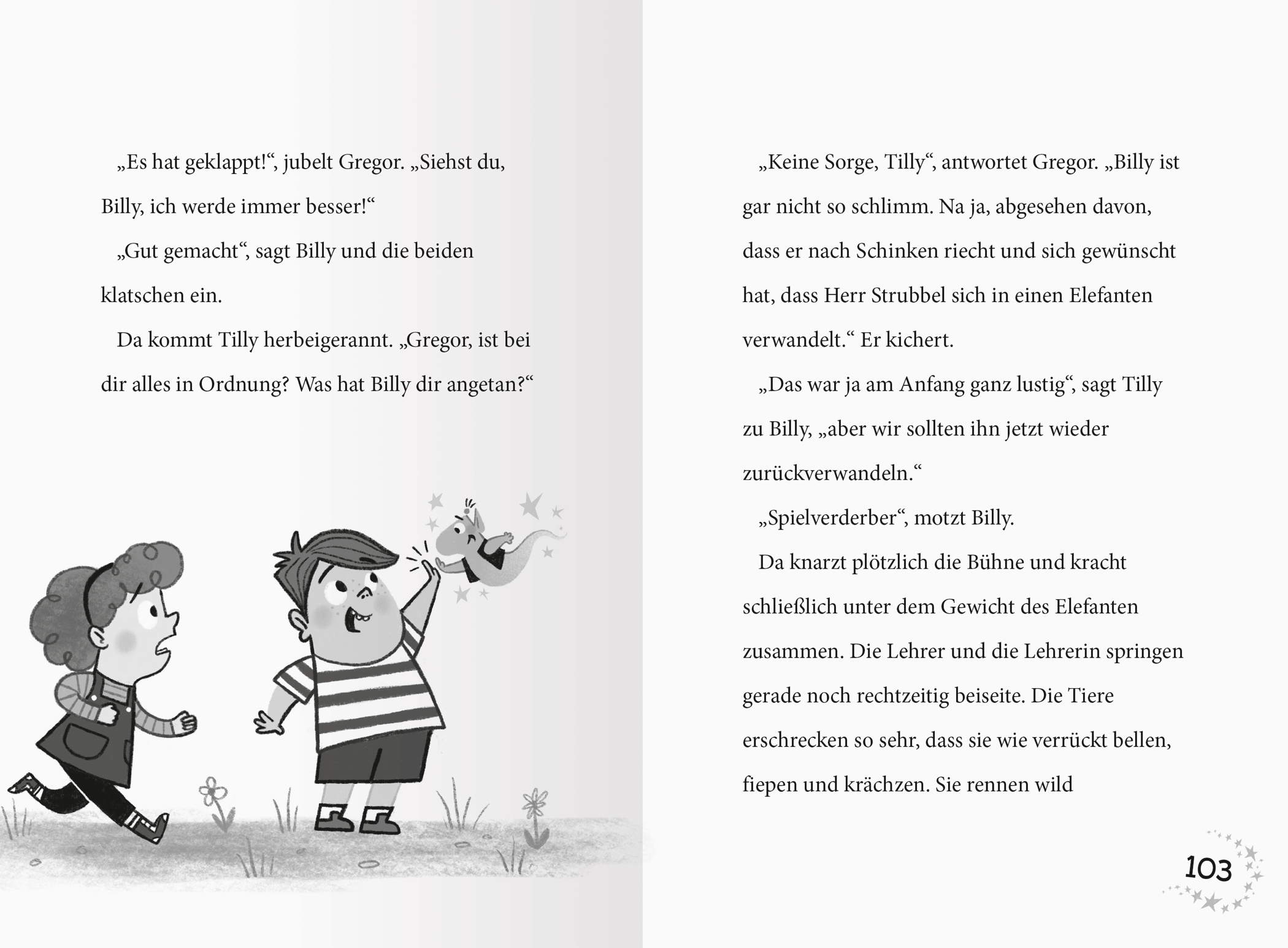 Ein Alligator in der Schule, ein Lehrer, der sich bei jedem Niesen in ein anderes Tier verwandelt und ein spülender Oktopus? Das kann nur eins bedeuten: Flaschengeist Gregor hat wieder einmal aus Versehen ungenau gezaubert. Und so geht es in der Schule heute drunter und drüber. Timmi und Gregor müssen das Wunschchaos stoppen, bevor noch ein großes Unglück passiert! Ein turbulentes Vorlesebuch über Verantwortung und Freundschaft, mit viel Magie und Lachgarantie.