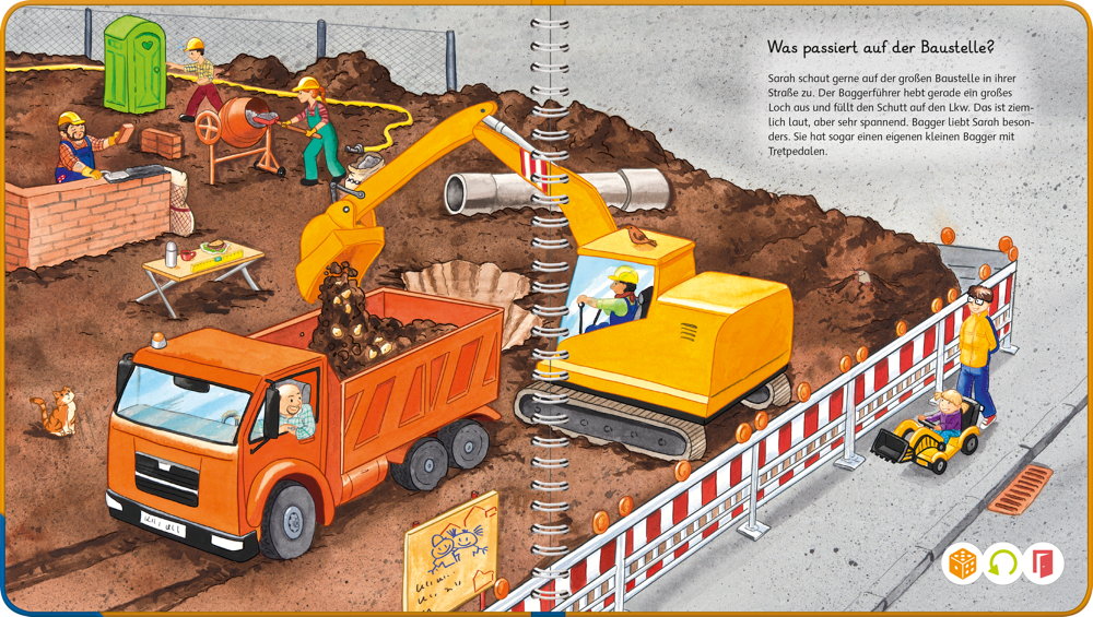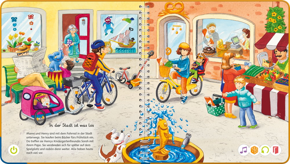 Wörterlernen leicht gemacht: Unterwegs gibt es viel zu sehenGemeinsam mit den Kindern Sarah und Henry gehen kleine Entdecker auf eine spannende Erkundungstour. Sie radeln durch die Stadt, beobachten Boote auf dem See, machen einen Spaziergang und buddeln auf dem Spielplatz im Sand. Kinder erweitern spielerisch ihren Wortschatz und verinnerlichen erste grammatische Strukturen. Spiele und Lieder vertiefen den gelernten Wortschatz.Mit der Reihe tiptoi Mein Wörter-Bilderbuch bauen Kinder spielerisch ihren Wortschatz auf und erweitern diesen selbstständig. Die kurzen, leicht verständlichen Texte eignen sich ideal für Kinder ab 3 Jahren. Jedes Buch zeigt den Kindern bekannte Szenen und Situationen und vermittelt viele vertraute Begriffe aus dem direkten Umfeld und der Erfahrungswelt der Kinder. Überall gibt es spannende Sätze, zahlreiche Dialoge und lustige Geräusche zu entdecken. Dabei sind die einzelnen Begriffe in ganze Sätze eingebunden, um den Kindern erste grammatische Strukturen zu vermitteln. In jedem Buch wird das Gelernte durch kindgerechte und abwechslungsreiche Spiele mit Lösungskontrolle abgefragt und vertieft. Neukomponierte Lieder und liebevolle Geschichten motivieren zum spielerischen Wörterlernen.tiptoi-Stift nicht enthalten. Muss separat erworben werden.