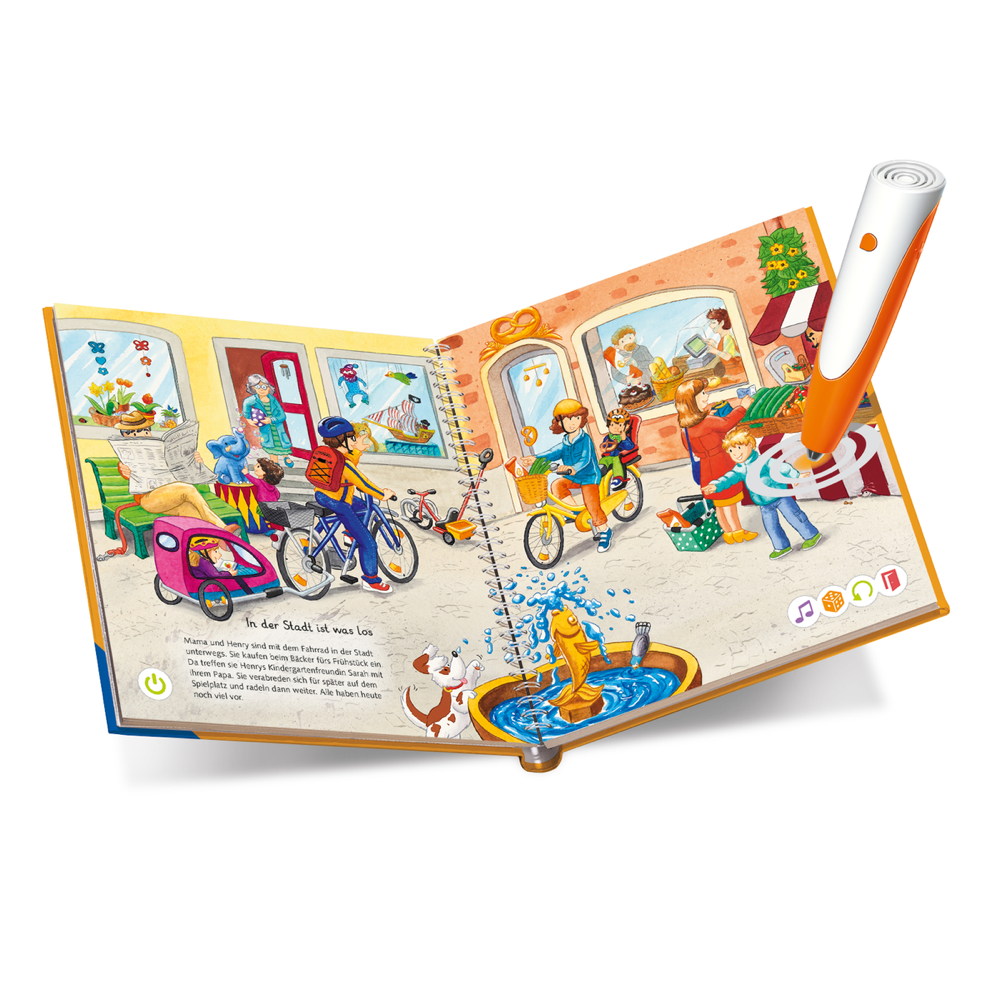 tiptoi ist ein innovatives Lernsystem, mit dem Kinder die Welt spielerisch entdecken. Tippt man mit dem Stift auf ein Bild oder einen Text, erklingen passende Geräusche, Sprache oder Musik. Dank der intelligenten Elektronik erleben Kinder Bücher, Spiele und Spielzeug völlig eigenständig immer wieder neu.