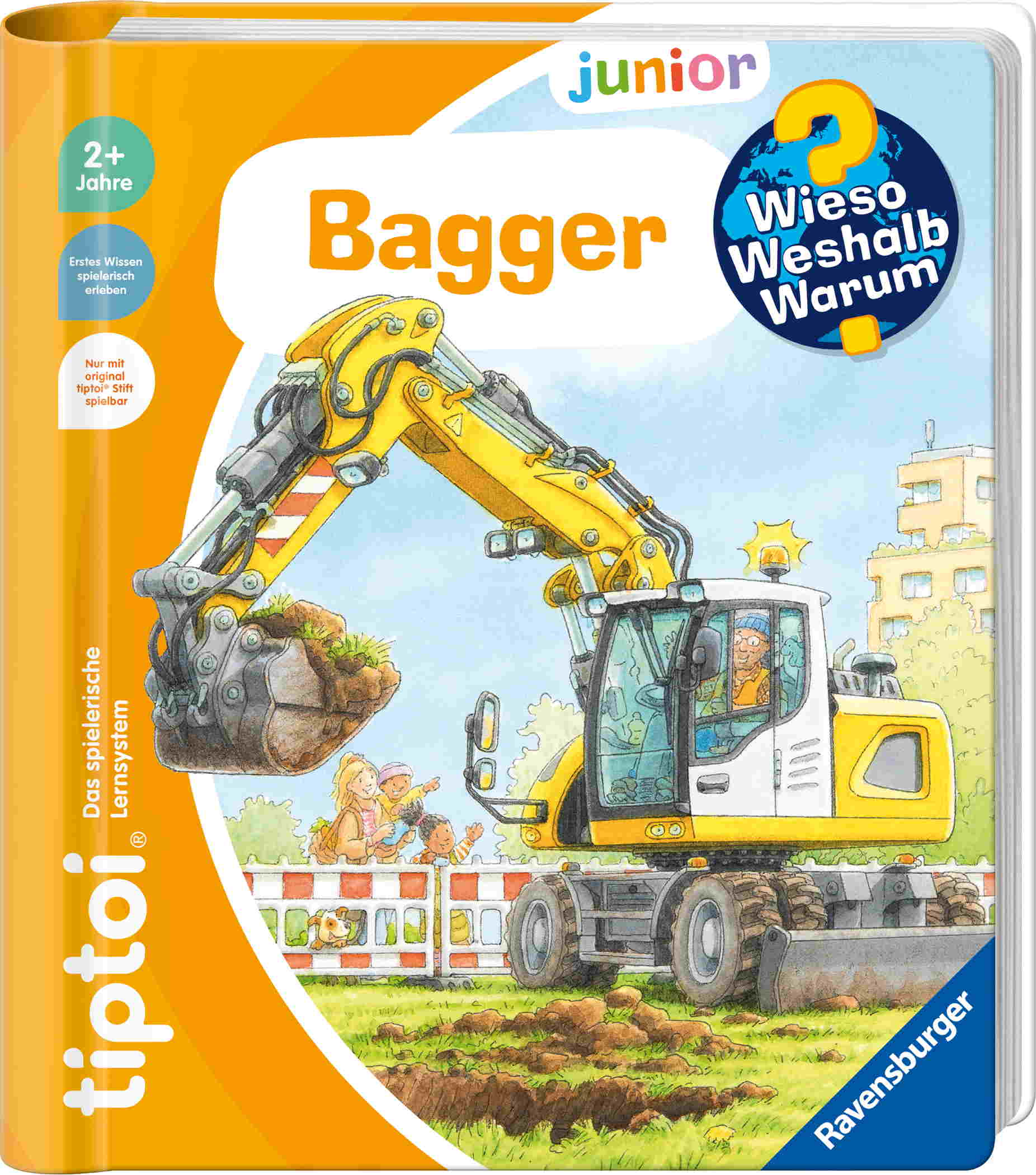 Was macht der Bagger auf der Baustelle? Wie groß wurden Dinosaurier? Die interaktive Sachbuchreihe tiptoi® Wieso? Weshalb? Warum? junior beantwortet erste Kinderfragen auf Augenhöhe. Die klaren und liebevollen Bilder werden durch viele authentische Geräusche lebendig. Das Sachwissen wird altersgerecht erklärt und ist fachlich geprüft. Dank der einfachen und intuitiven Nutzung mit dem tiptoi®-Stift können Kinder mit viel Spaß ihre Lieblingsthemen selbstständig entdecken. Ein Spiel, ein Lied und ein spannendes Hörspiel, lassen die Kinder noch tiefer in das jeweilige Thema eintauchen.