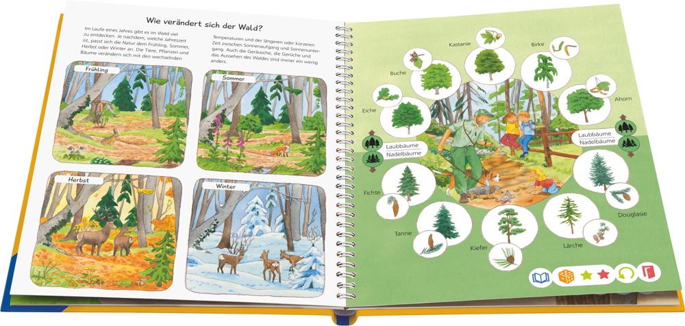Gemeinsam mit Clara, Finn, Ida und Förster Felix erkunden die Kinder den Wald und seine Bewohner: Bäume, Tiere, Pilze, Moose sie alle sind Teil dieser Lebensgemeinschaft. Wer lebt eigentlich wo im Wald? Und wofür ist der Wald gut? Wie können wir ihn schützen? tiptoi beantwortet Kinderfragen auf Augenhöhe. Ein Buch, das Kindern Wissen über den heimischen Wald vermittelt und für dessen Schutz sensibilisiert.