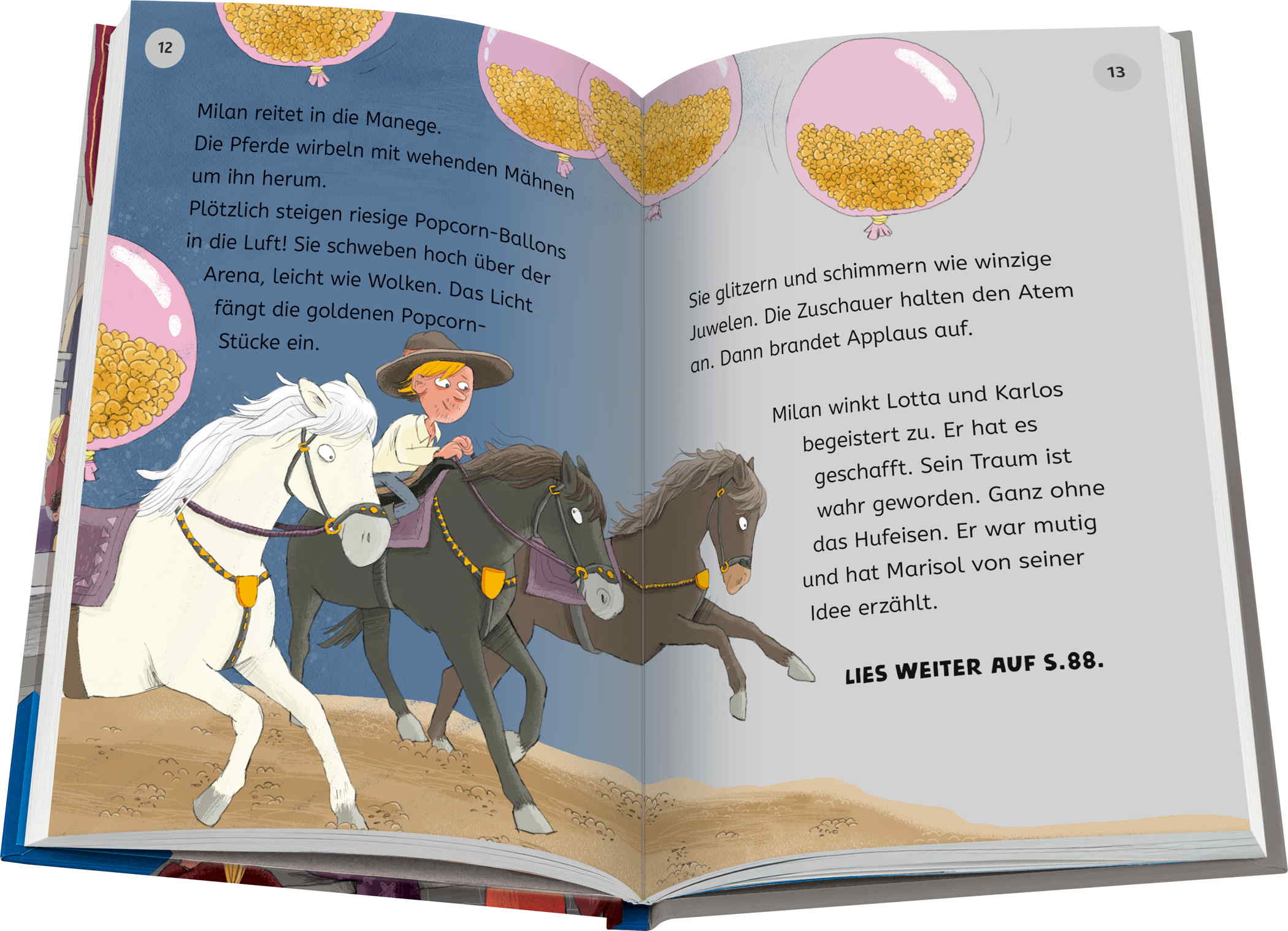 Lotta und Karlos freuen sich auf einen Tag im Freizeitpark mit Achterbahnen und atemberaubenden Shows. Doch dann erfahren sie im geheimnisvollen Fundbüro von Herrn Nox von einem verschwundenen Hufeisen. Ohne das kann die große Pferdeshow in der Arena nicht stattfinden! Jetzt bist DU gefragt: Erlebe mit Lotta und Karlos ein magisches Abenteuer und hilf ihnen, Flammensturms Hufeisen zu finden, bevor ein Unglück passiert! Welche Spur verfolgst du? Welches Rätsel knackst du zuerst?