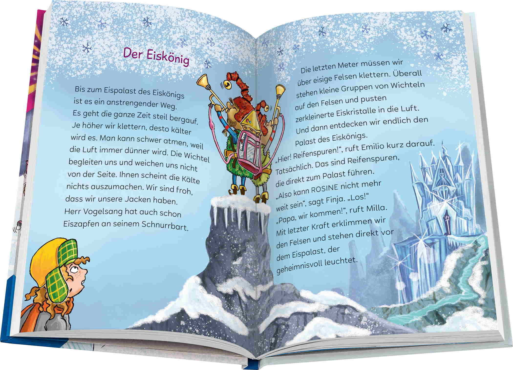 Die 4a der Bastian-Baltasar-Bux Schule geht mal wieder auf Klassenfahrt. Genauer gesagt: Auf unendliche Klassenfahrt. Der Schulbus ROSINE ist nämlich in Wirklichkeit ein Portal in Parallelwelten. Diesmal landet die Klasse in den Bergen und gerät in die Gewalt des unheimlichen Eiskönigs. Der hat die Rechnung aber ohne Herrn Vogelsang, den genialen Klassenlehrer der 4a, gemacht...