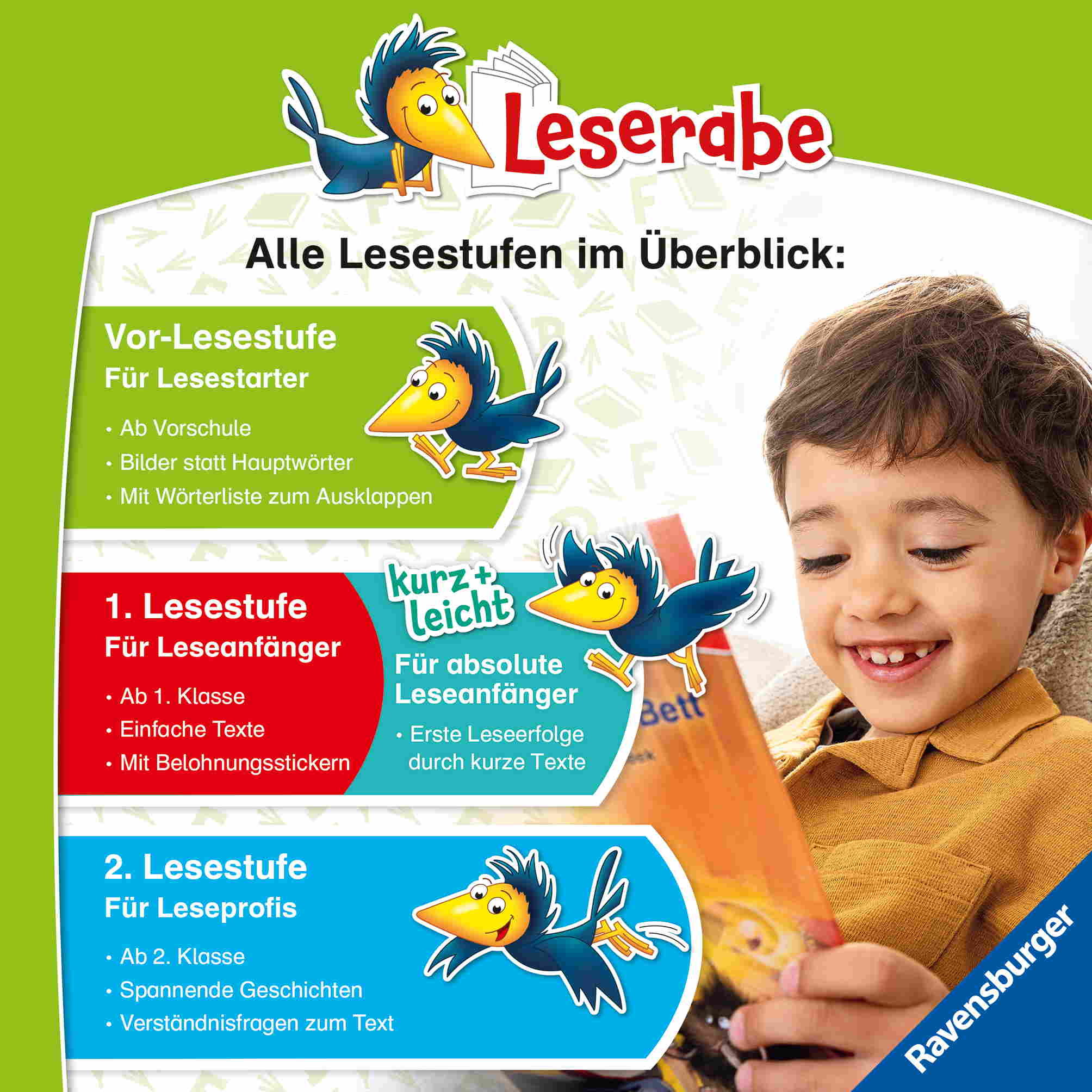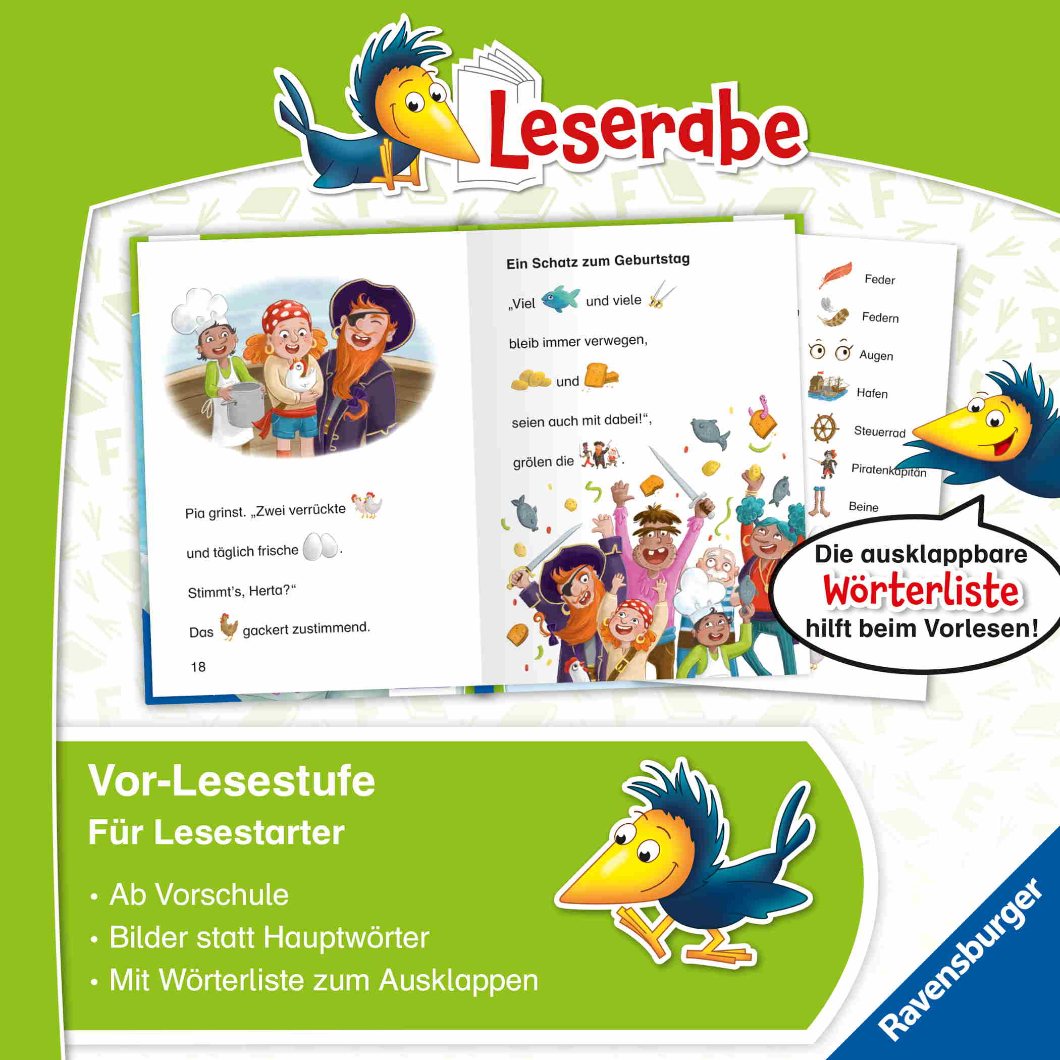 Die Kinderbücher der Reihe Leserabe – Vor-Lesestufe wurden mit Pädagogen entwickelt und ermöglichen Kindern im Vorschulalter und deren Eltern als Leseteam erste gemeinsame Leseerlebnisse. Hauptwörter werden durch Bilder ersetzt, sodass Mädchen und Jungen ab 5 Jahren leicht in den Leseprozess einbezogen werden können.