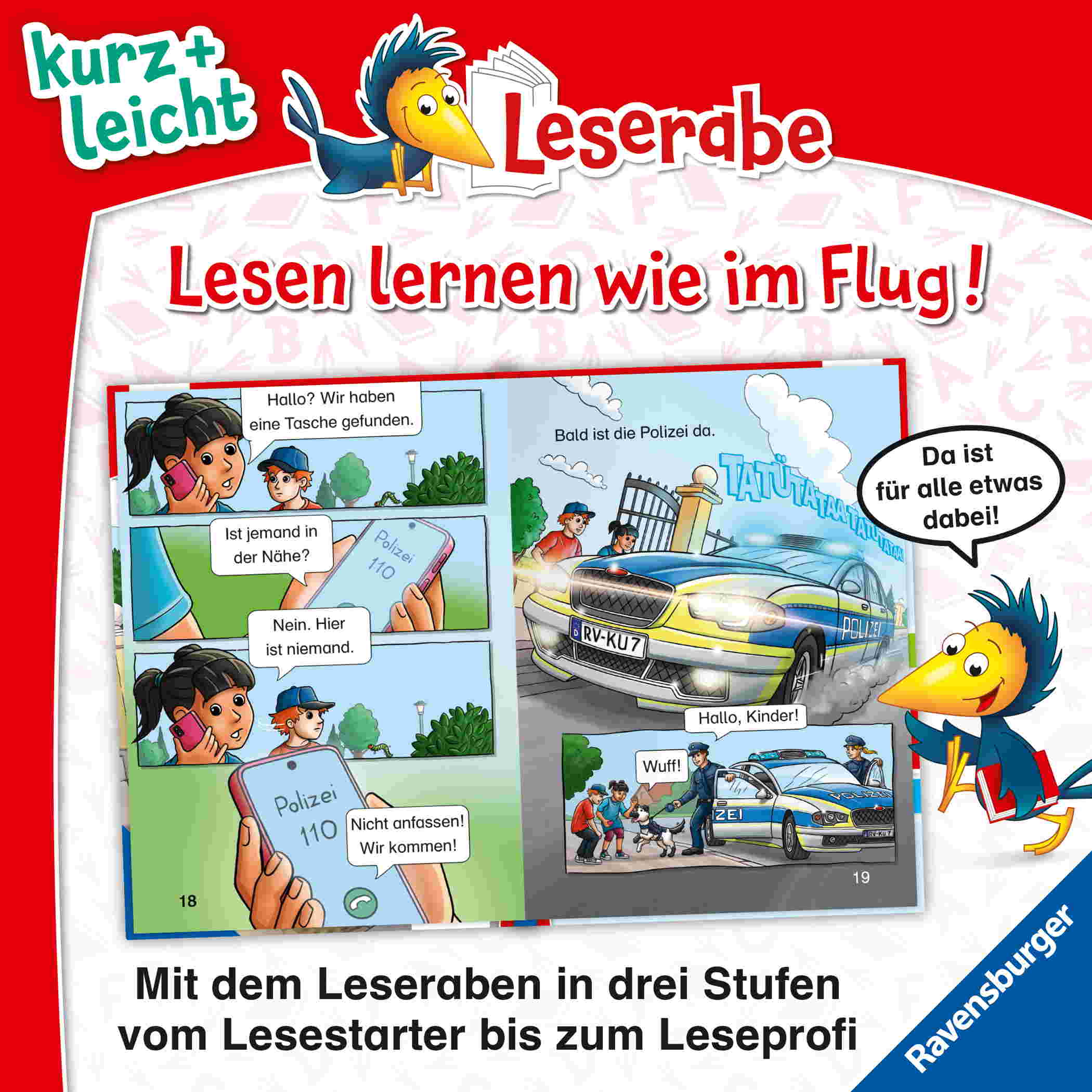 Die Kinderbücher der Reihe "Leserabe – 1. Lesestufe – kurz + leicht" wurden mit Pädagogen entwickelt und richten sich an absolute Leseanfänger ab der 1. Klasse. Sie zeichnen sich durch besonders kurze Texte in großer Fibelschrift, wörtliche Rede in Sprechblasen und einen hohen Bildanteil aus. So steigern sie die Lesemotivation und Lesekompetenz von Mädchen und Jungen zu Beginn ihres Leselern-Prozesses.
