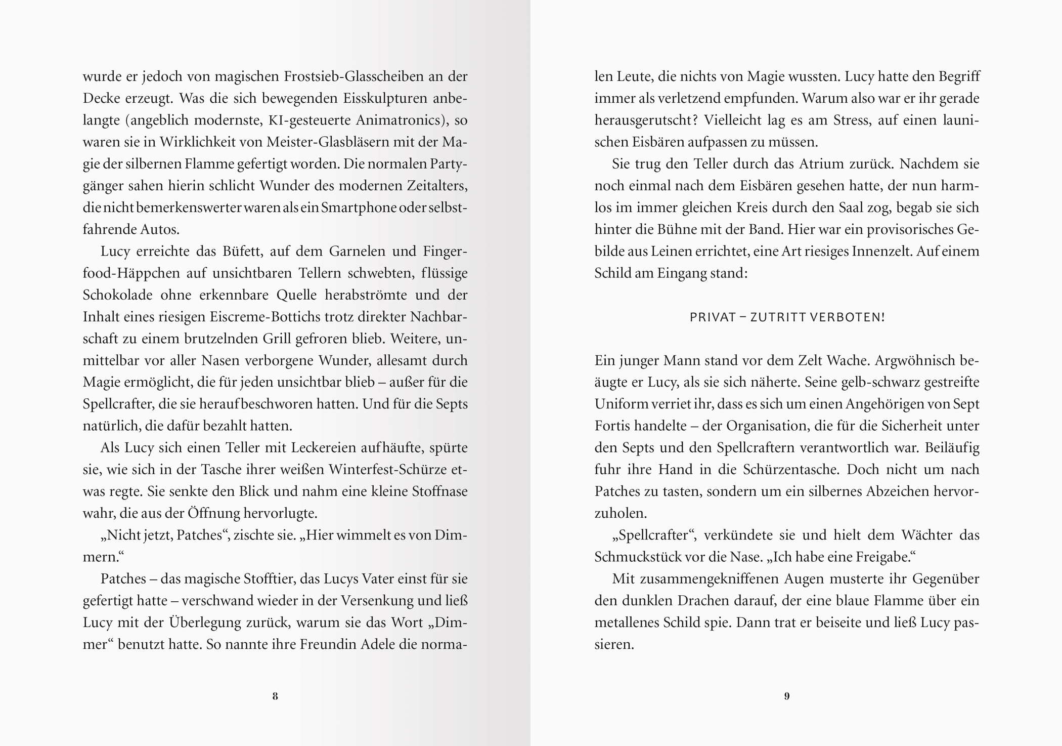 „Sag ihnen, sie sollen fliehen.“ Kaum hört Lucy die körperlose Stimme in ihrem Kopf zum ersten Mal, da bricht um sie herum Chaos aus. Gleißend helle Gestalten stürmen das diesjährige Winterfest und stehlen eines der wertvollsten Schmuckstücke der magischen Welt. Und nicht nur das: Überall in London verschwinden plötzlich Spellcrafter unter mysteriösen Umständen. Was ist nur in der Stadt los? Einzig die Stimme in Lucys Kopf scheint Antworten zu haben. Doch kann Lucy ihr wirklich trauen?