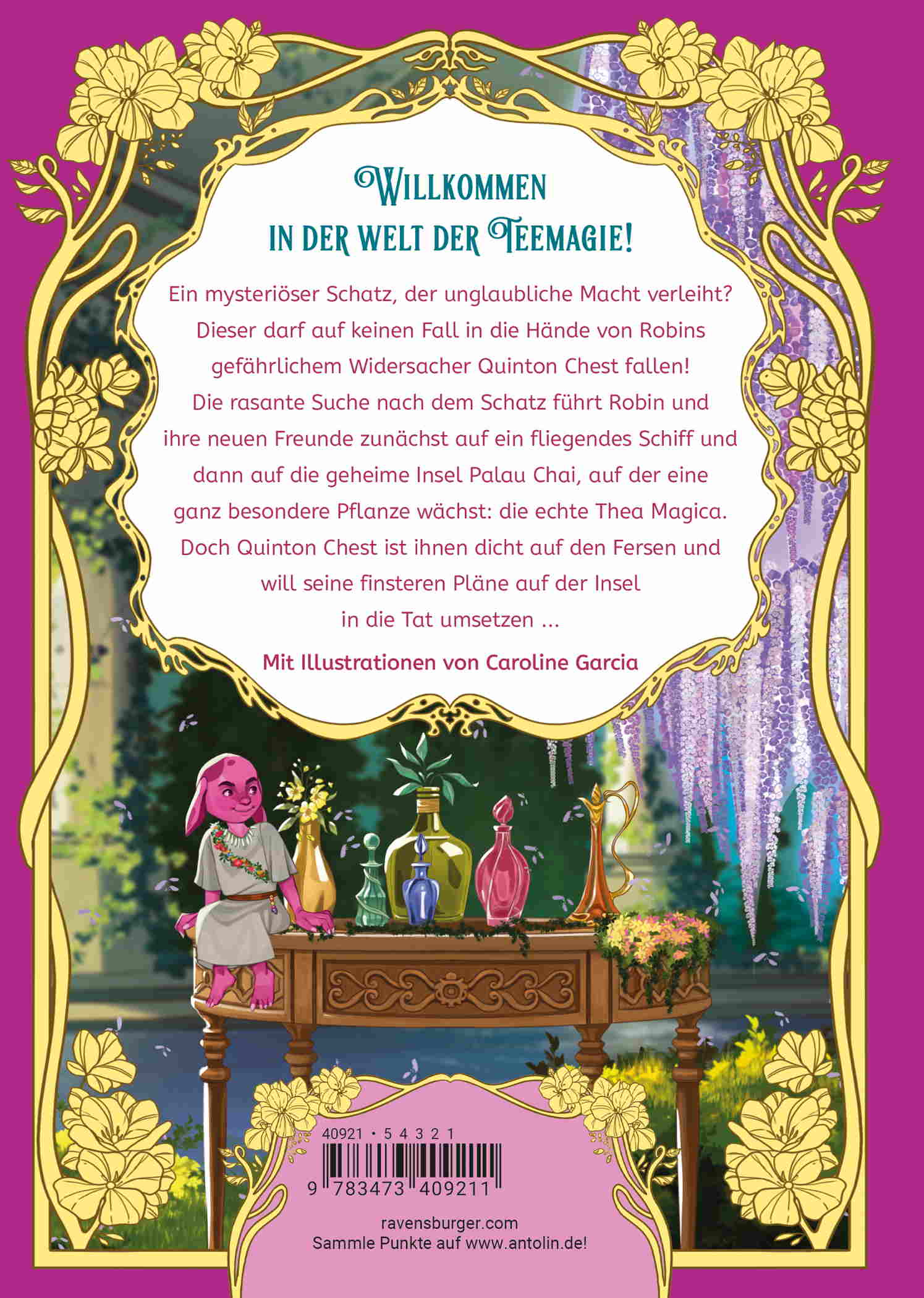 Ein mysteriöser Schatz, der unglaubliche Macht verleiht? Dieser darf auf keinen Fall in die Hände von Robins gefährlichem Widersacher Quinton Chest fallen! Die rasante Suche nach dem Schatz führt Robin und ihre neuen Freunde zunächst auf ein fliegendes Schiff und dann auf die geheime Insel Palau Chai, auf der eine ganz besondere Pflanze wächst: die echte Thea Magica. Doch Quinton Chest ist ihnen dicht auf den Fersen und will seine finsteren Pläne auf der Insel in die Tat umsetzen …