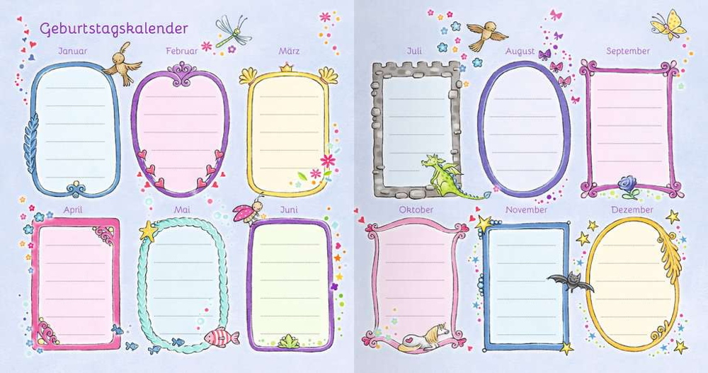 Wunderschöne Prinzessinnen, magische Einhörner und freche Feen - lustige Motive, einfache Fragen und viel Platz zum Ausfüllen für die liebsten Freunde.