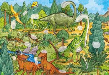 - Aufwendig illustrierte Wimmelbilder voller witziger Details zum Thema Dinosaurier