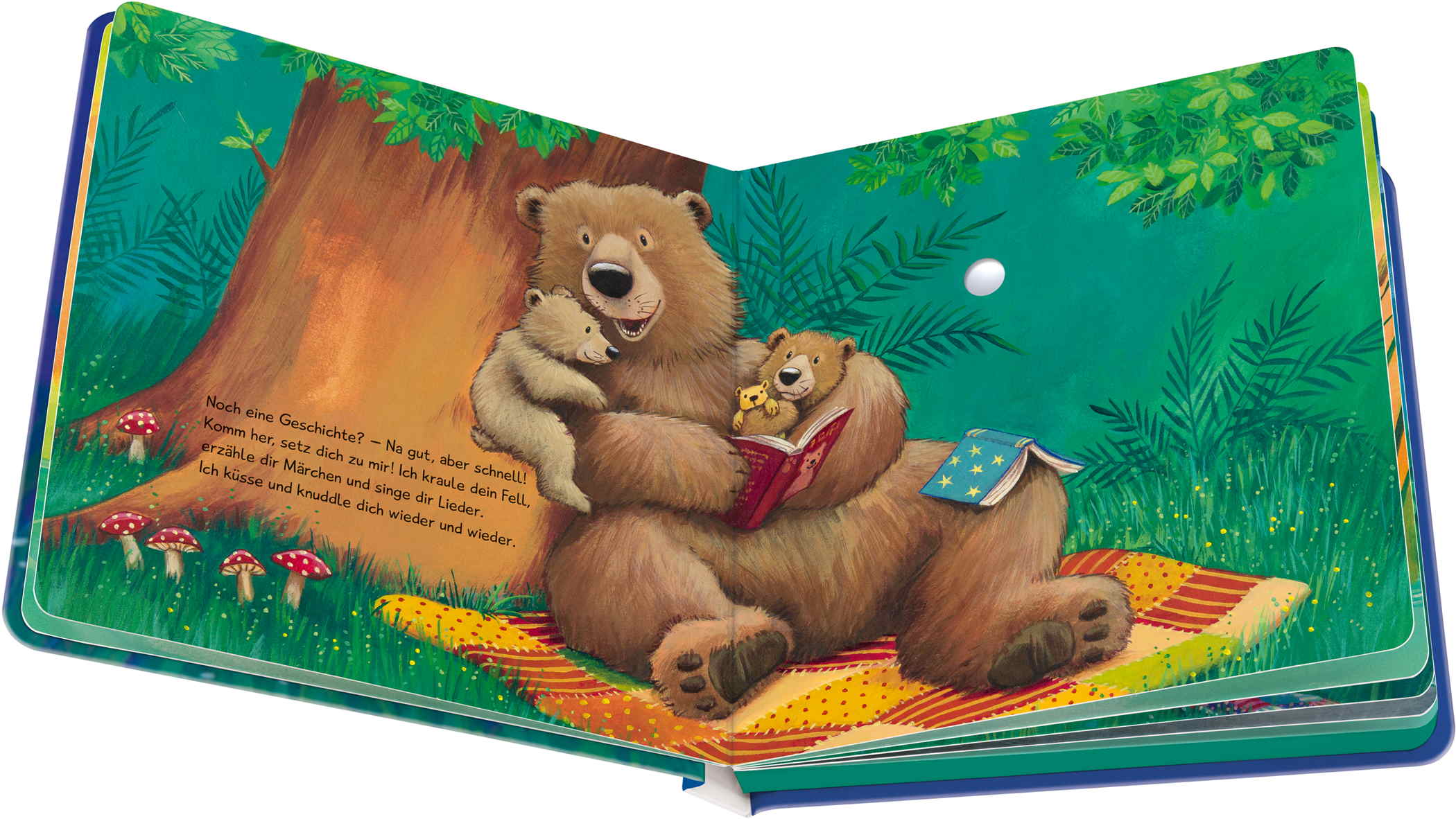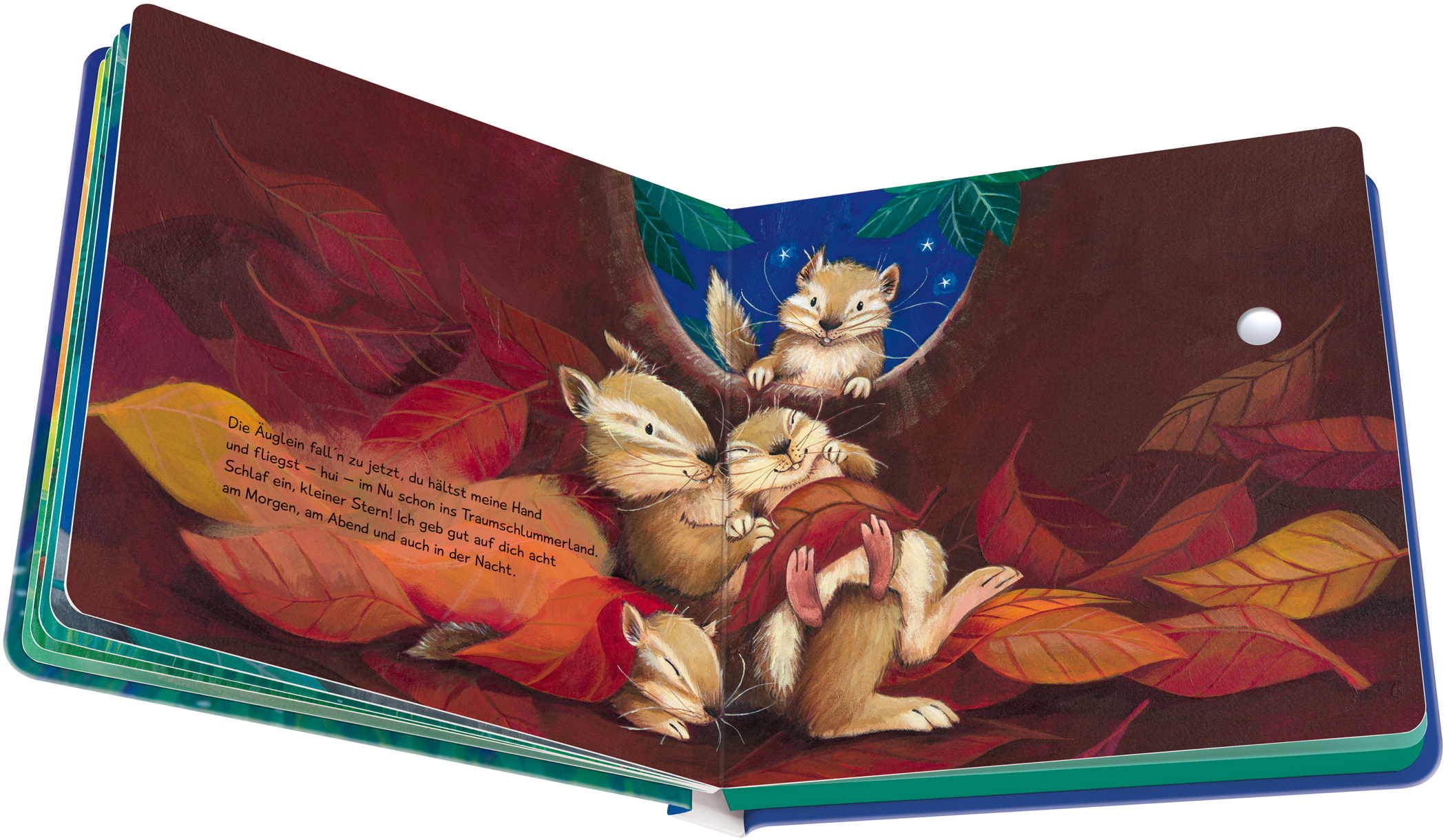 Der Bär liest noch eine Geschichte vor. Und der kleine Vogel sucht sein Kuscheltier. In diesem Buch können Eltern, Großeltern und andere Schenkende mit einer integrierten Aufnahmefunktion die liebevollen Reime selbst einsprechen oder eine persönliche Botschaft für das Kind hinterlassen. Kinder ab 2 Jahre können zusätzlich einem Erzähler lauschen, der die 5 warmherzigen Gute-Nacht-Reime vorliest.