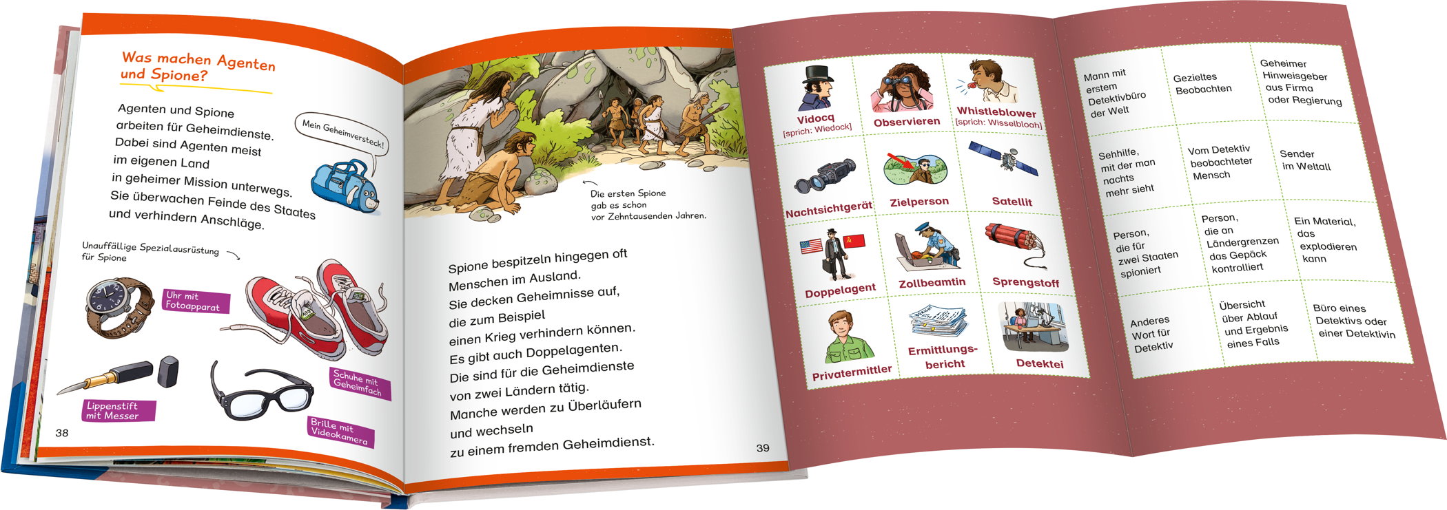 Was muss ein Detektiv können? Wie arbeitet eine Geheimagentin? Was bedeutet „observieren“? All das finden kleine Leserinnen und Leser hier Zeile für Zeile selbstständig heraus. Sie erkunden den Berufsalltag von verschiedenen Ermittlerinnen und Ermittlern und lernen ihre Methoden kennen – mithilfe einfacher, kurzer Texte. Anschauliche Illustrationen und Fotos unterstützen dabei. Und für jede Menge Spaß sorgen Sticker, ein Spiel und viele Rätsel.