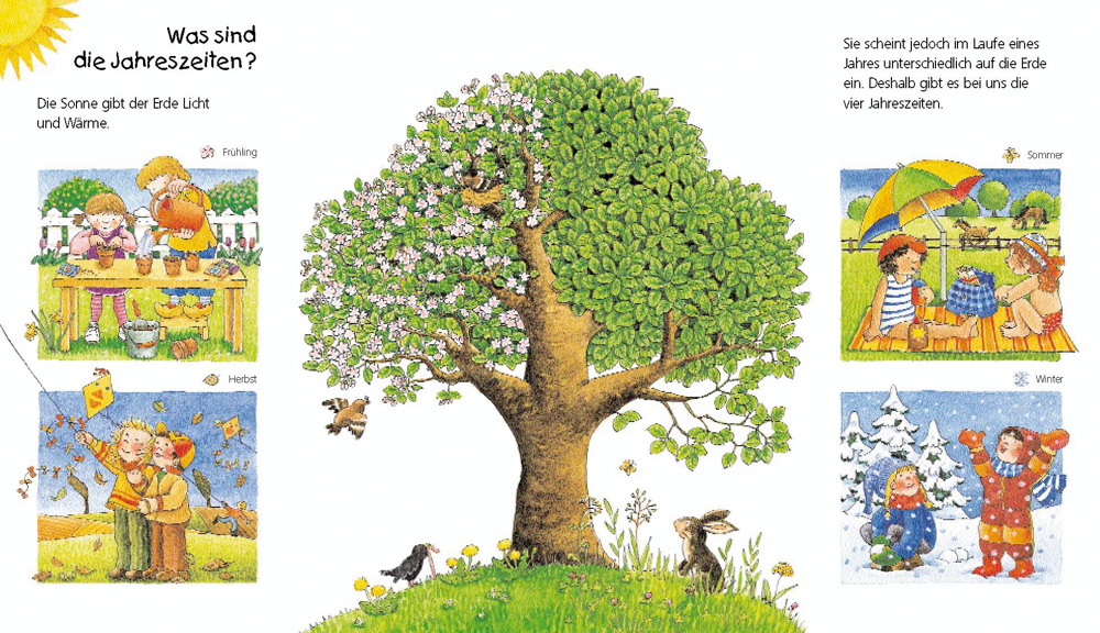 Mit vielen spielerischen Klappen und einer Jahreszeiten-Drehscheibe