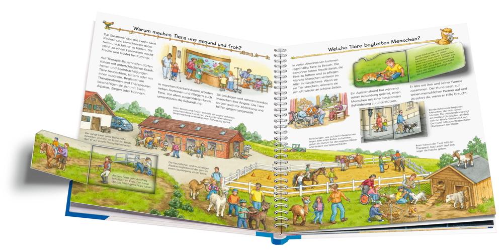 Mit Spürnase, Stärke und Einfühlungsvermögen stehen Tiere uns Menschen jeden Tag zur Seite. Ochse, Esel und Dromedar tragen und ziehen für uns Lasten, während Hütehunde, Lamas und Gänse aufpassen und beschützen. Mithilfe von Klappen entdecken Kinder, wie Polizeipferde eine Demo begleiten, Rettungshunde Vermisste aufspüren und Therapie-Alpakas beim Heilen helfen. Und sie sind dabei, wenn Tier und Mensch für diese Aufgaben gemeinsam trainieren.