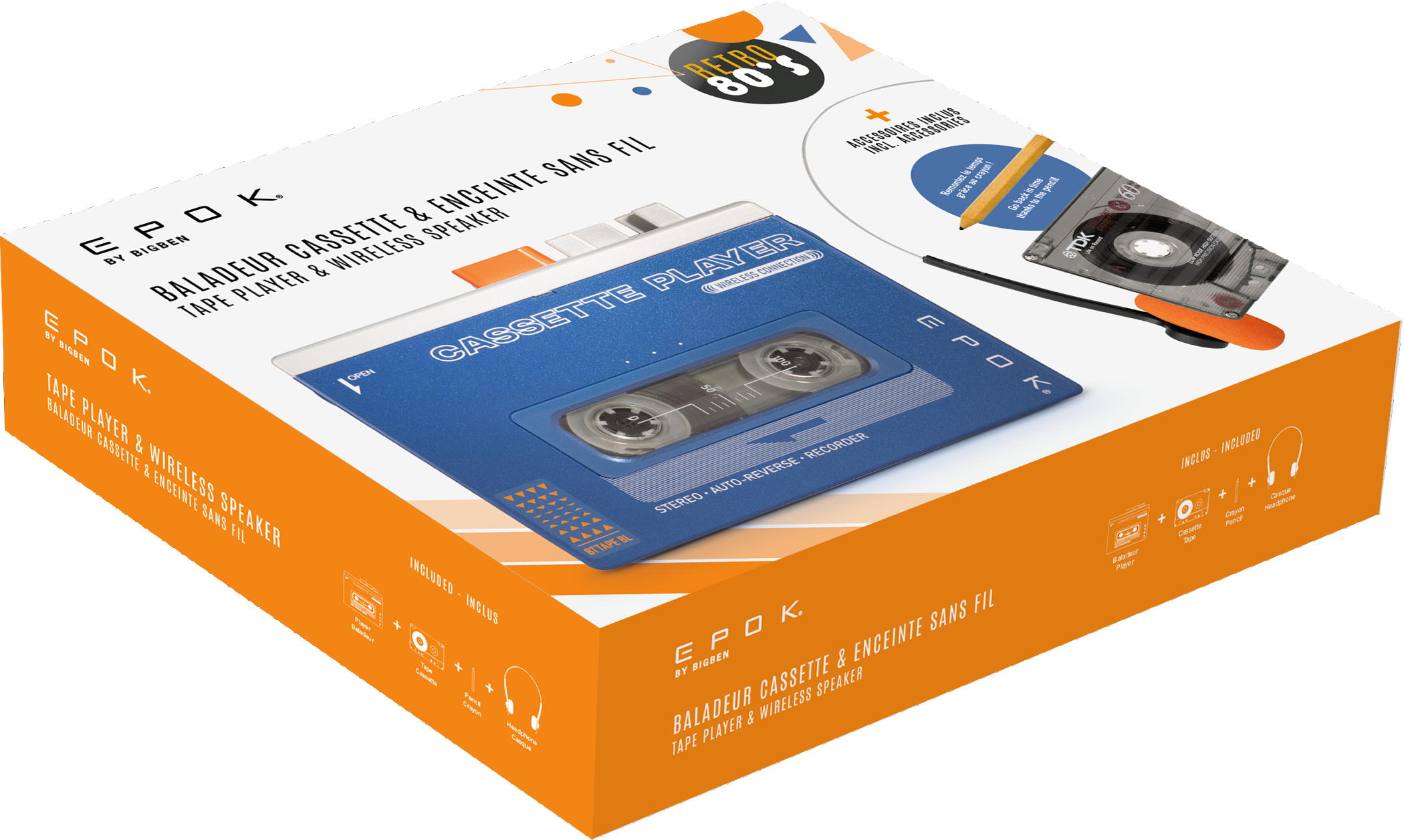 -Um dieses neu interpretierte Vintage-Erlebnis zu vervollständigen, haben wir einen Kopfhörer mit verstellbarem Metallbügel beigefügt, der Komfort und Retro-Stil vereint. Und weil die Liebe zum Detail den Unterschied ausmacht, liegt dem Set ein Bleistift bei, der Ihnen bei Bedarf beim manuellen Zurückspulen hilft.
