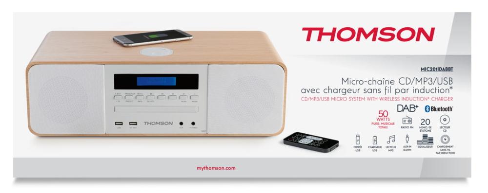 Thomson Bluetooth Kompaktanlage MIC201IDABBT USB MP3 Qi-Charger DAB+ Radio Holz weiß TH371697