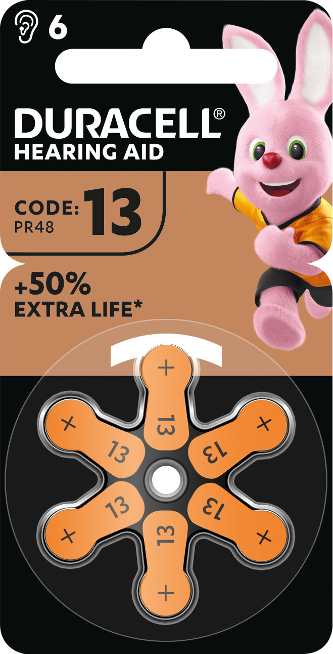 60 Duracell Easytab Typ 13 / DA 13 Zink-Luft Hörgerätebatterien im 6er Blister