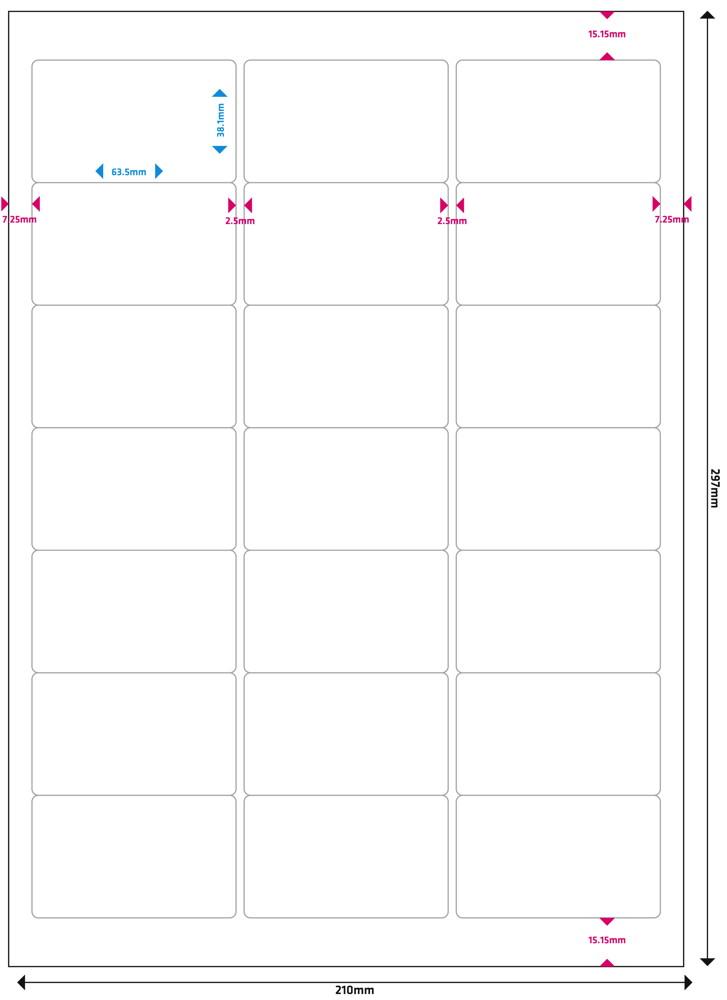 - Anzahl der Etiketten pro Bogen: 21 Stück