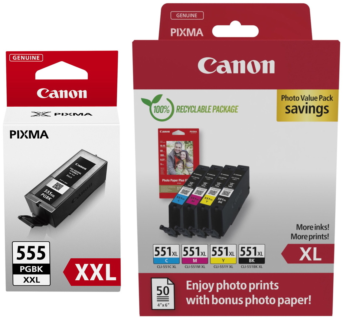 5 Canon Druckerpatronen Tinte PGI-555 XXL PGBK / CLI-551 XL BK / C / M / Y Multipack