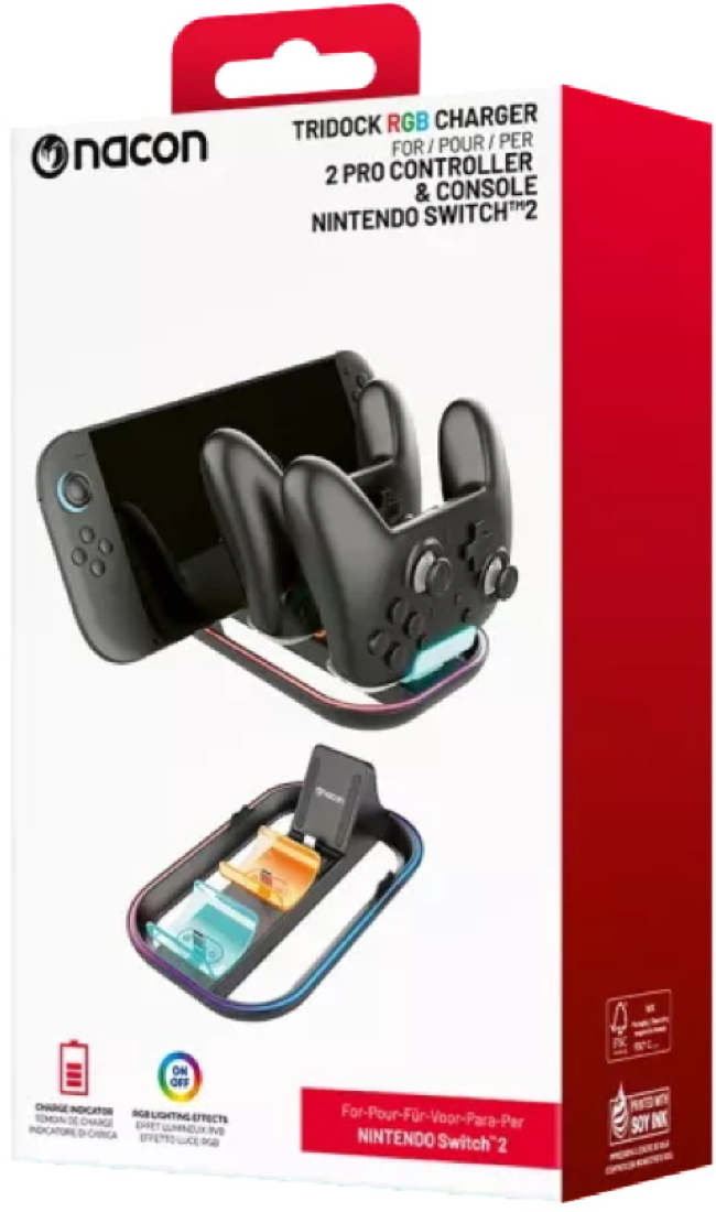 Nacon Ladegerät für Nintendo Switch 2 Tri Charging Station für Switch 2, 2 Pro Crontroller NA029086