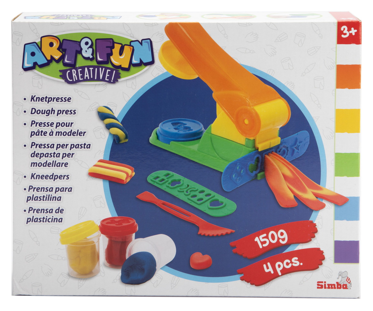 Mit dem Art & Fun Knetset ist Knetspaß garantiert. Mit der Softknete und der dazugehörigen Presse können verschiedene Formen gepresst und diese wiederum zu tollen Abbildungen zusammen gebastelt werden. Im Set enthalten sind 3 Dosen Knete à 50g, zwei Schablonen und ein Messer.