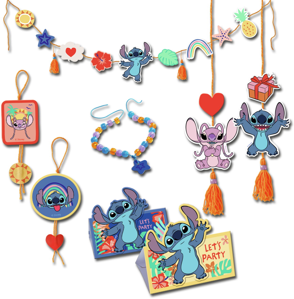 Kreatives DIY Bastelset für Kinder ab 6 Jahren mit den Disney Charakteren Stitch und Angel im farbenfrohen Aloha-Stil