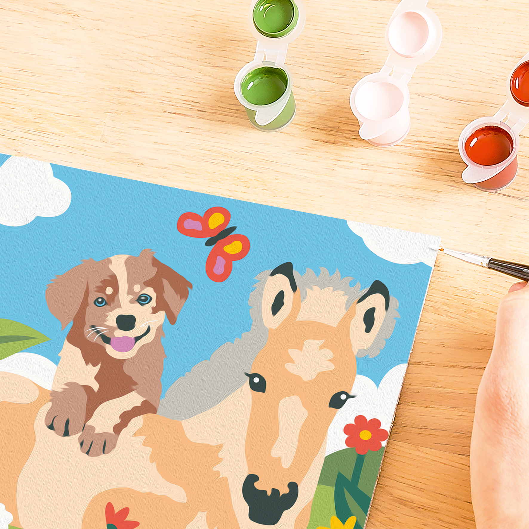 Geschenkidee: Das Motiv Fohlen und Welpe lässt Kinderaugen leuchten und ist daher ein hervorragendes Geschenk für Mädchen und Jungen – ob zu Weihnachten, Ostern oder zum Geburtstag