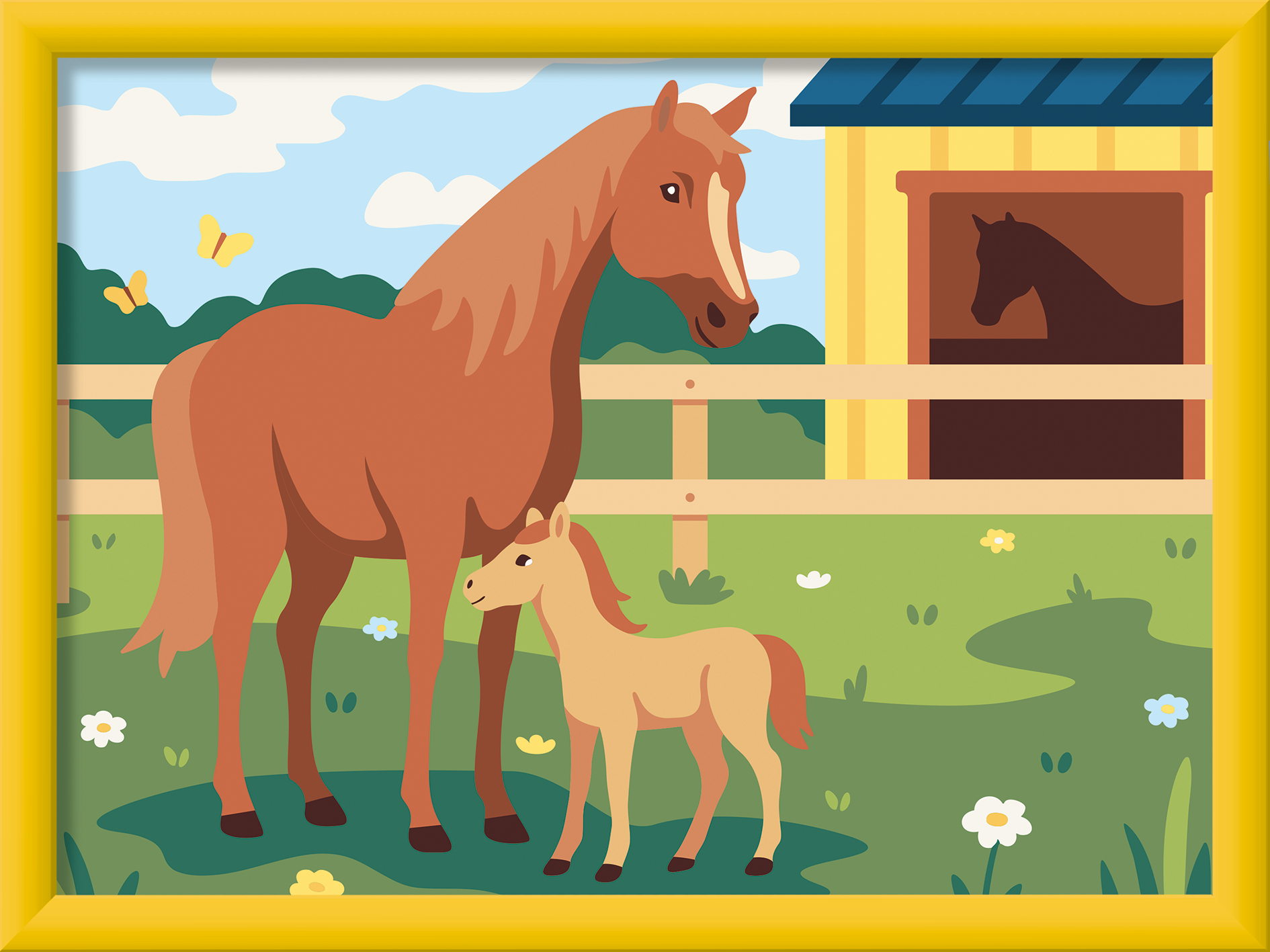 Geschenkidee: Das Motiv Pferdemama und Fohlen lässt Kinderaugen leuchten und ist daher ein hervorragendes Geschenk für Mädchen und Jungen – ob zu Weihnachten, Ostern oder zum Geburtstag
