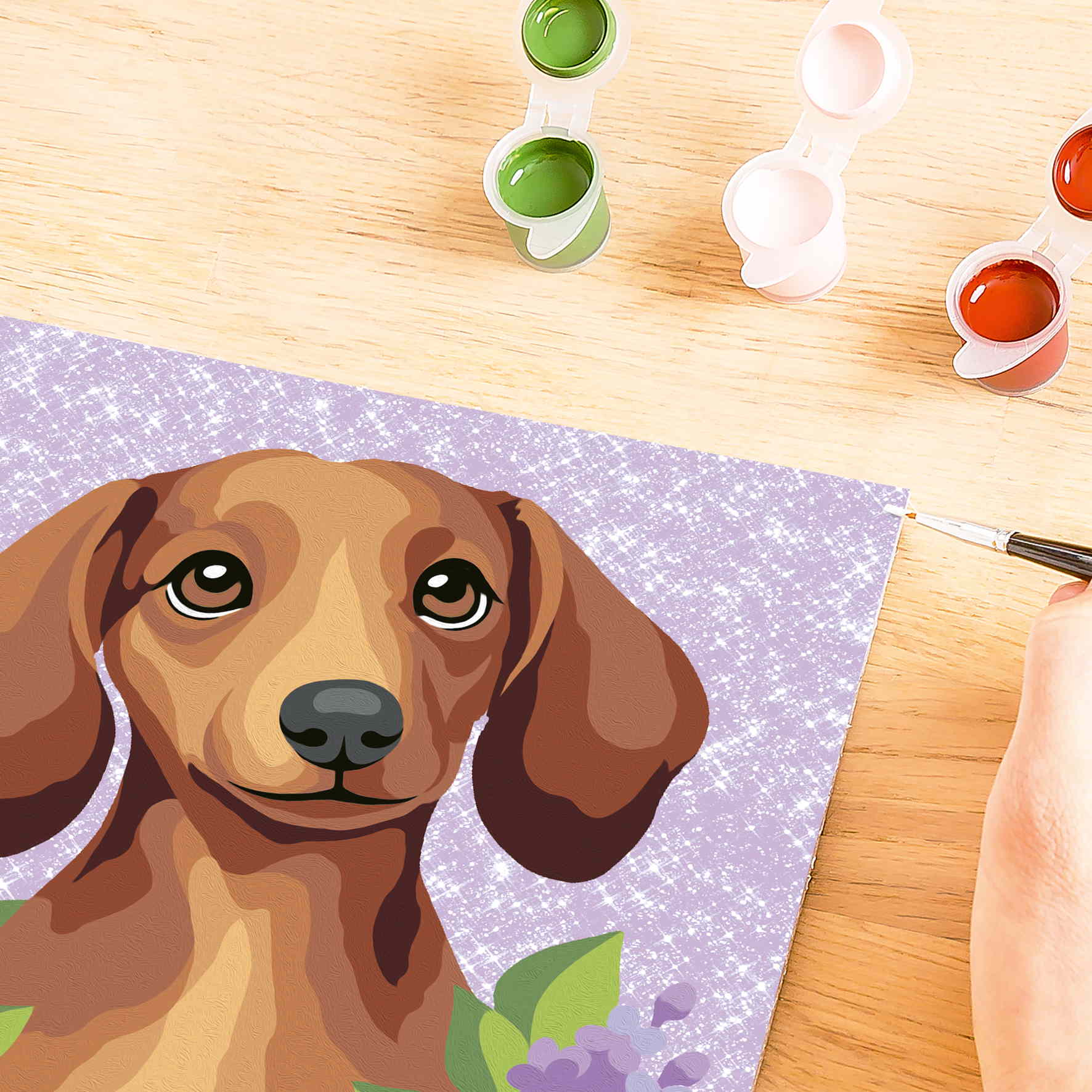 Geschenkidee: Das Motiv Dackel Lilac lässt Kinderaugen leuchten und ist daher ein hervorragendes Geschenk für Mädchen und Jungen – ob zu Weihnachten, Ostern oder zum Geburtstag