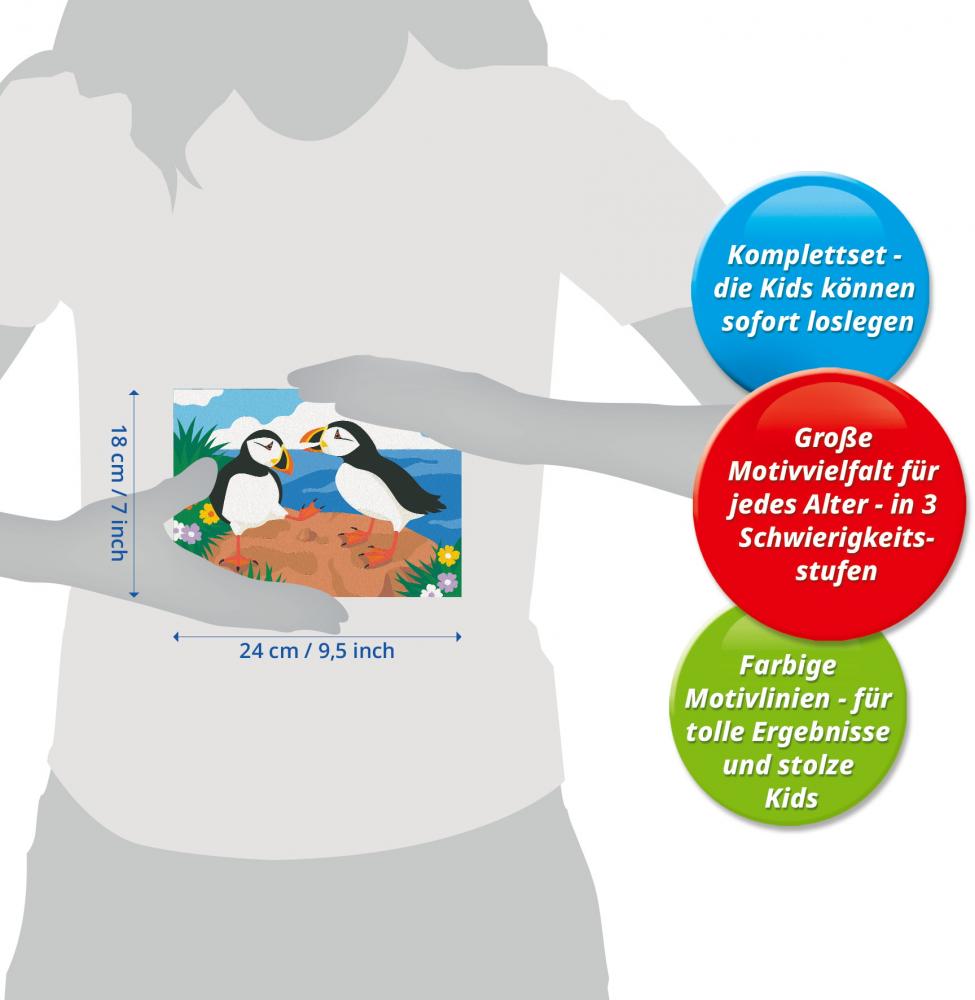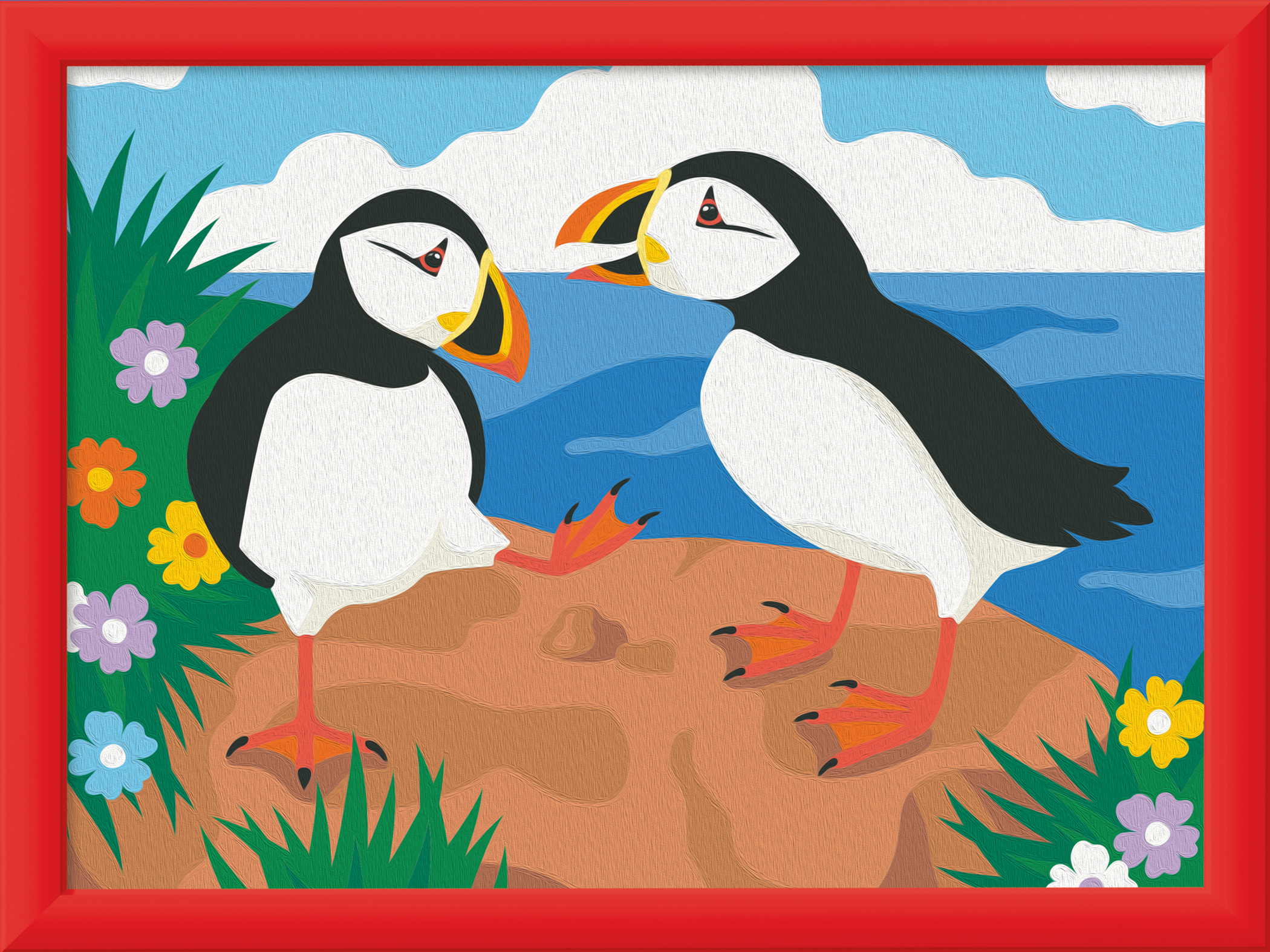 Großer Malspaß mit den Lieblingsmotiven der Kinder: Die fröhlichen Papageientaucher bringen Kinderaugen zum Leuchten und sind somit das ideale Geschenk für kleine und große Künstler.