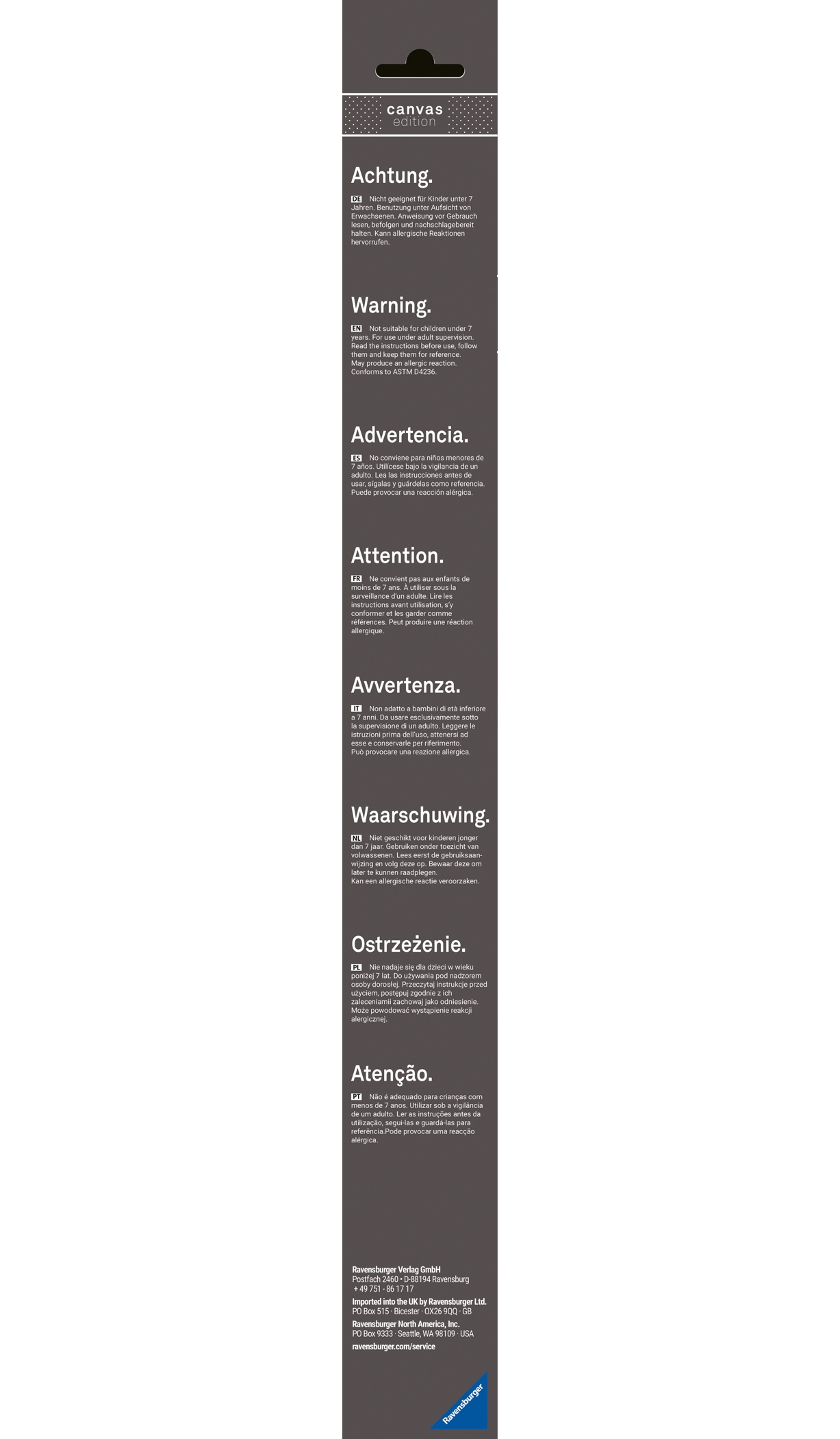 Achtung. Nicht geeignet für Kinder unter 7 Jahren. Benutzung unter Aufsicht von Erwachsenen. Anweisung vor Gebrauch lesen, befolgen und nachschlagebereit halten. Die Farben enthalten Reaktionsmasse aus 5-Chlor-2- methyl-2H-isothiazol-3-on und 2-Methyl-2H-isothiazol-3-on (3:1) Kann allergische Reaktionen hervorrufen.