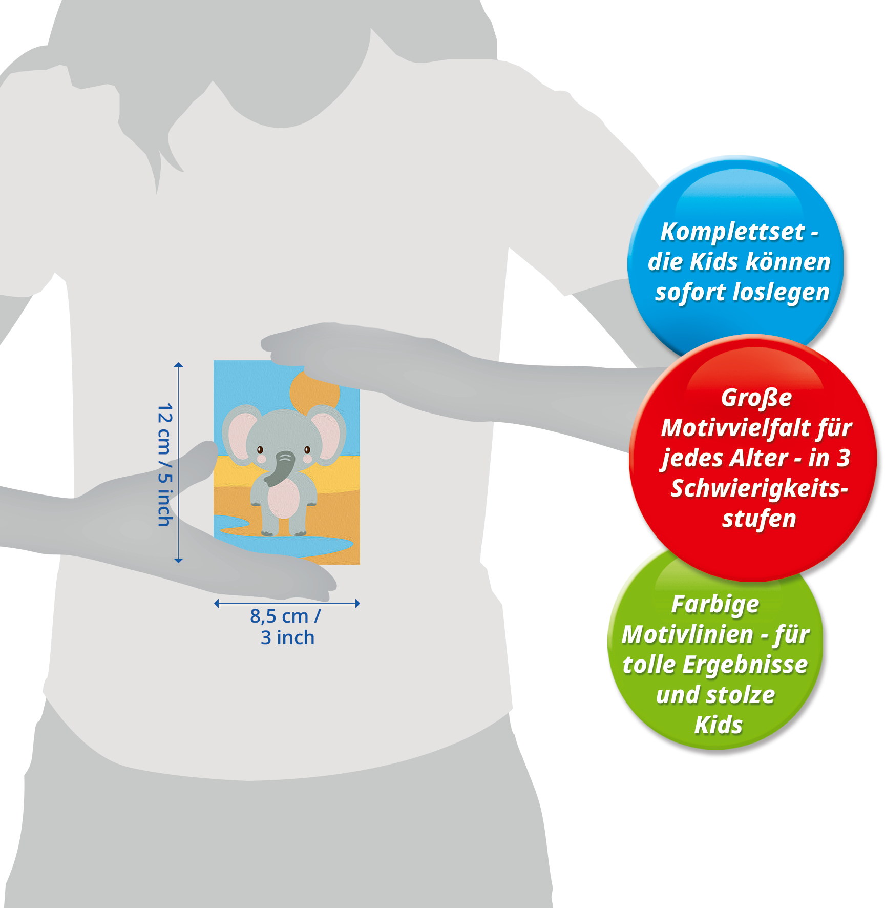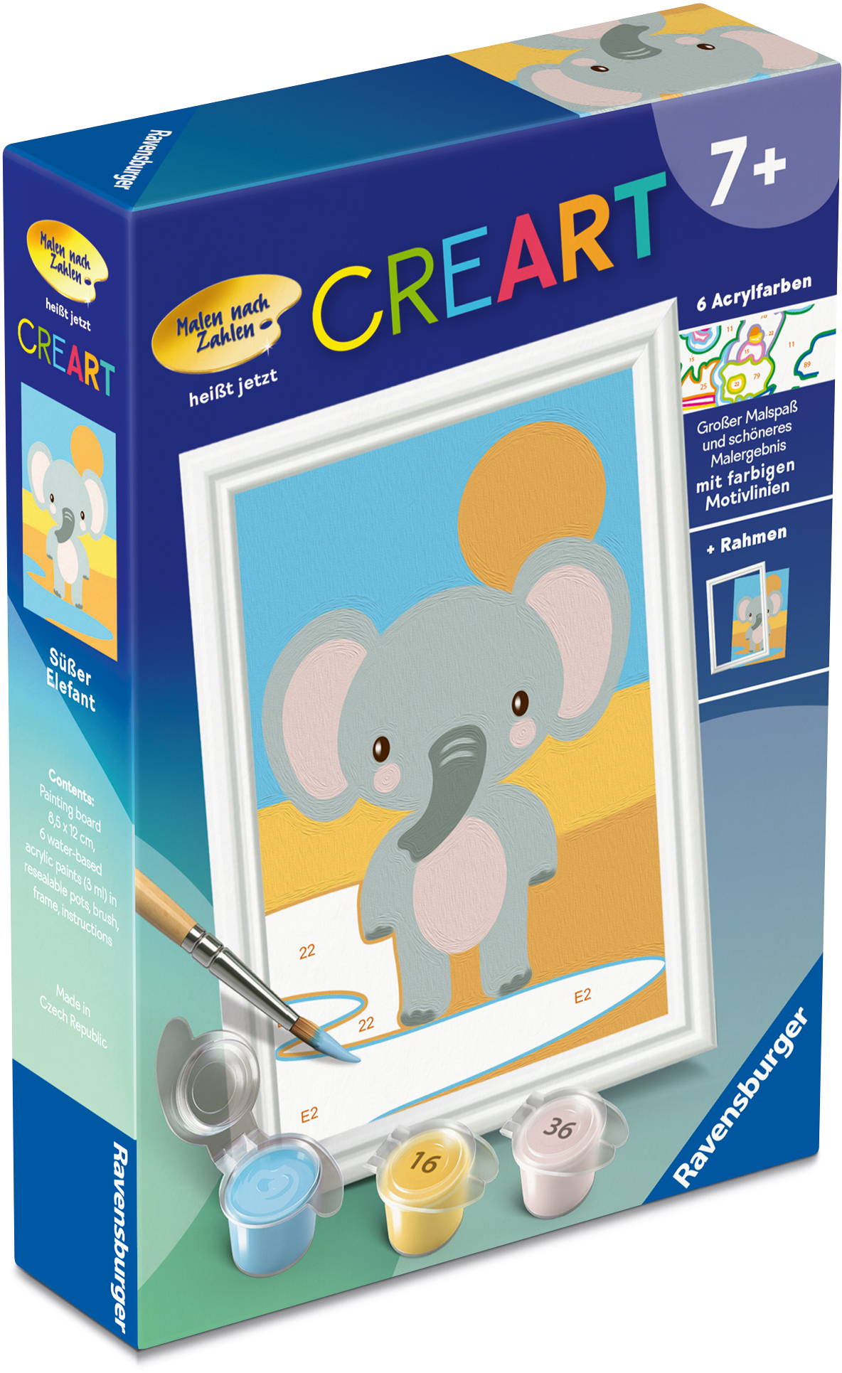 Großer Malspaß mit den Lieblingsmotiven der Kinder: Der süße Elefant bringt Kinderaugen zum Leuchten und ist somit das ideale Geschenk für kleine und große Künstler.