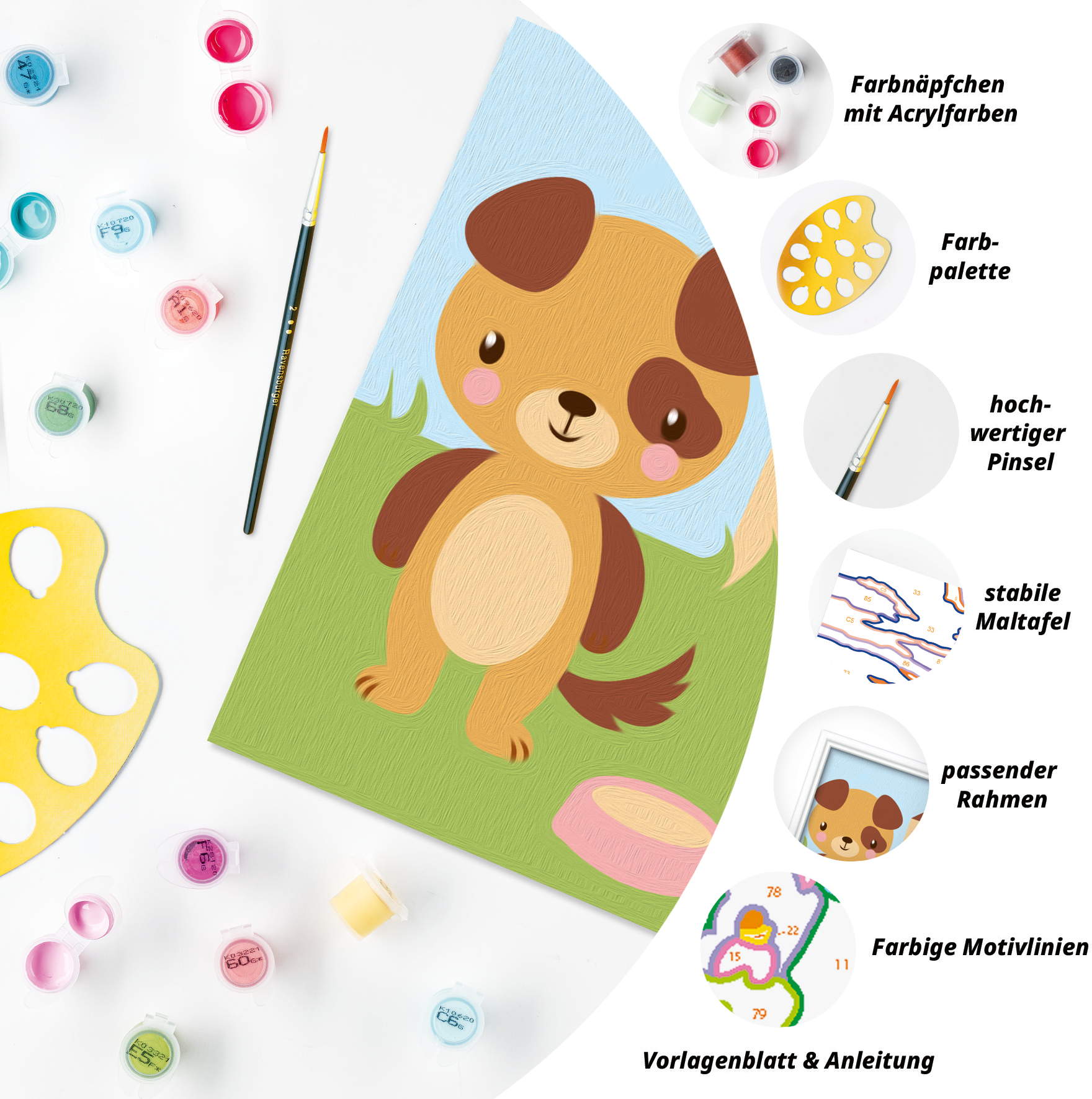 Großer Malspaß mit den Lieblingsmotiven der Kinder: Der süße Hund bringt Kinderaugen zum Leuchten und ist somit das ideale Geschenk für kleine und große Künstler.