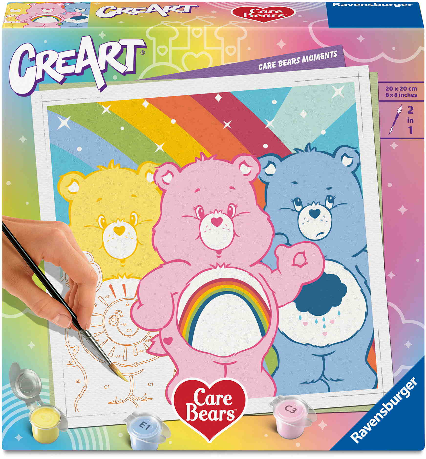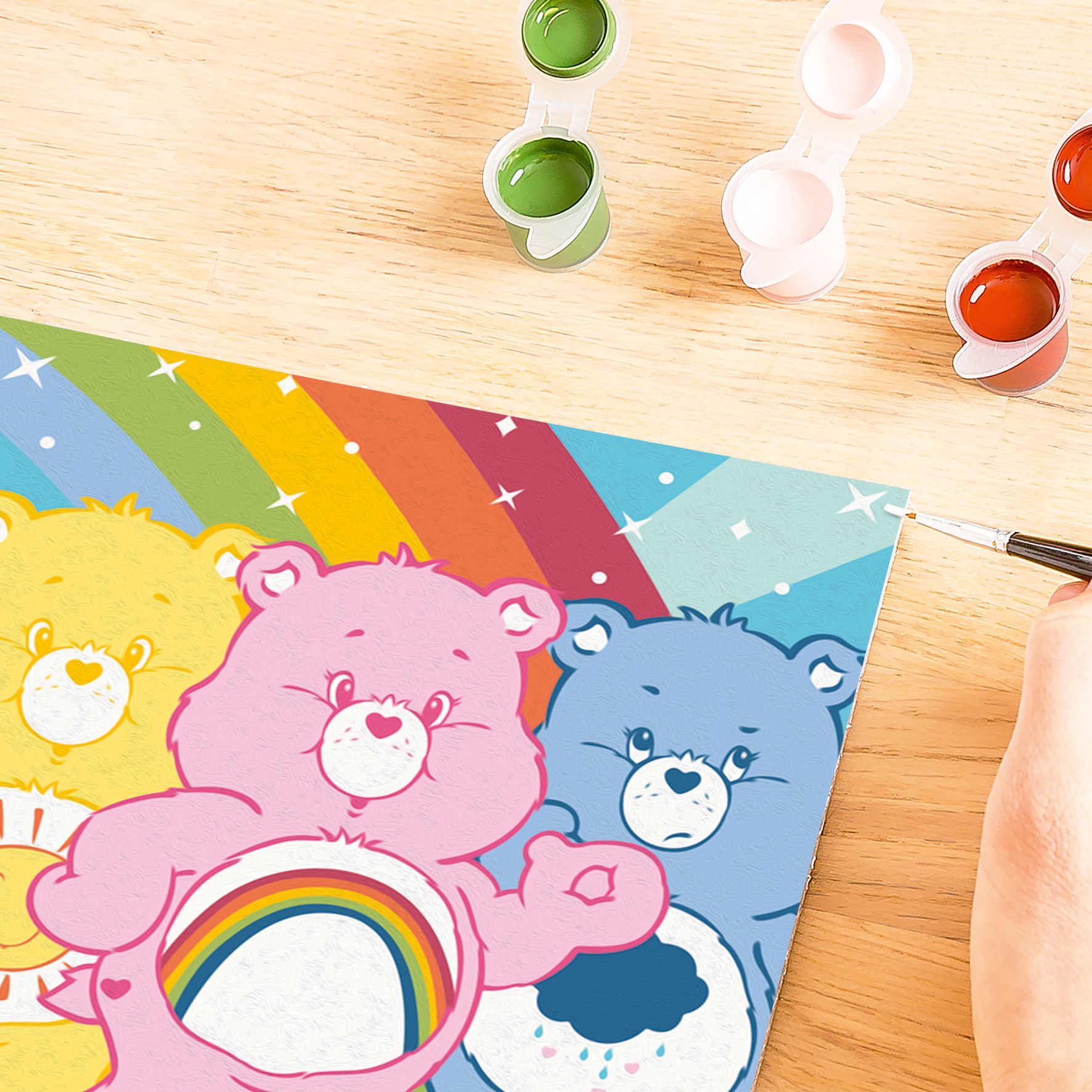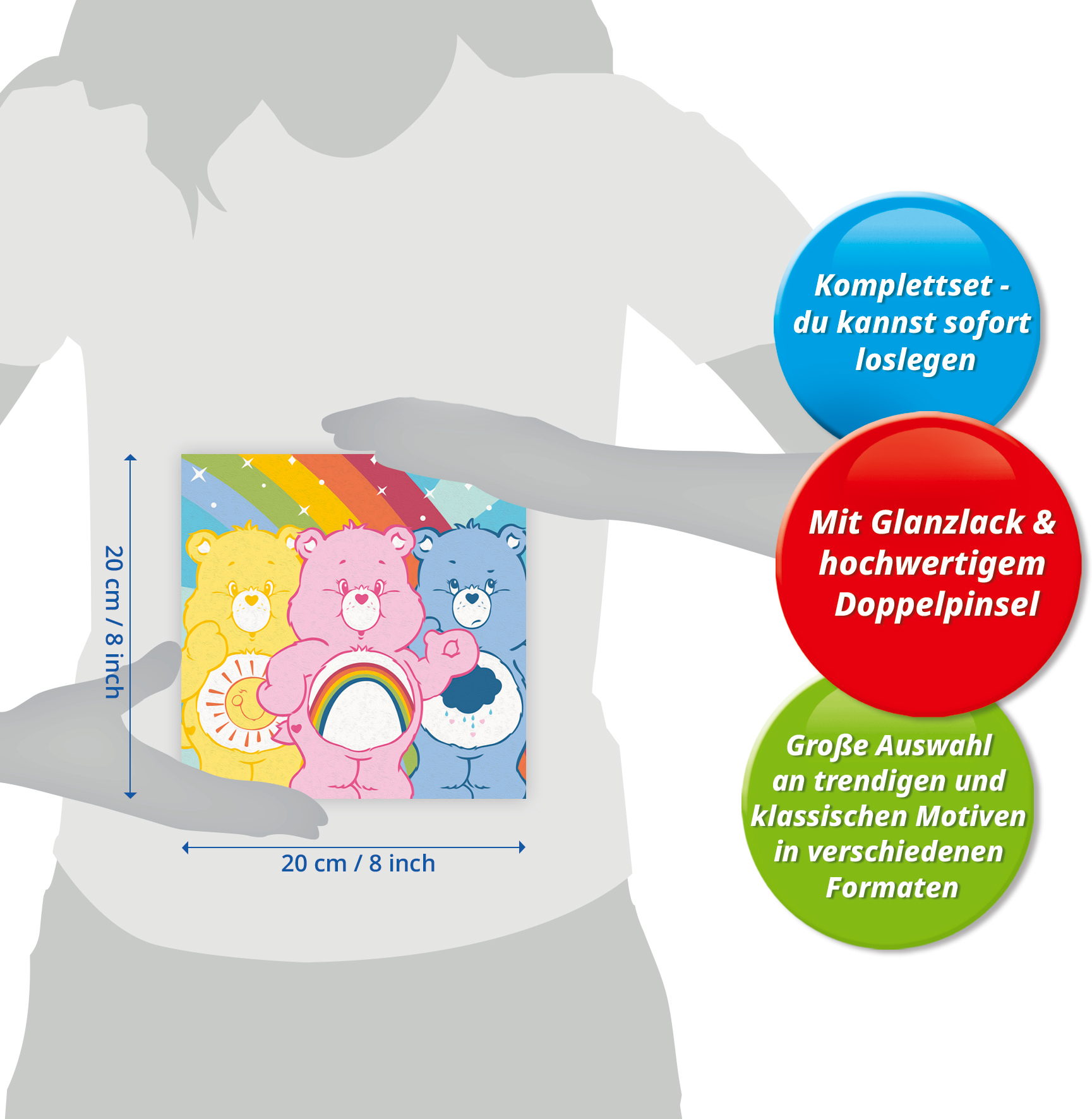 Das Malset enthält: Acrylfarben in wiederverschließbaren, nummerierten Töpfen, eine Maltafel mit den Maßen 20,00 cm x 20,00 cm, einen Pinsel, eine Anleitung – die Farben trocknen schnell, sind wasserbasiert, geruchsneutral und erfordern keinen Pinselreiniger