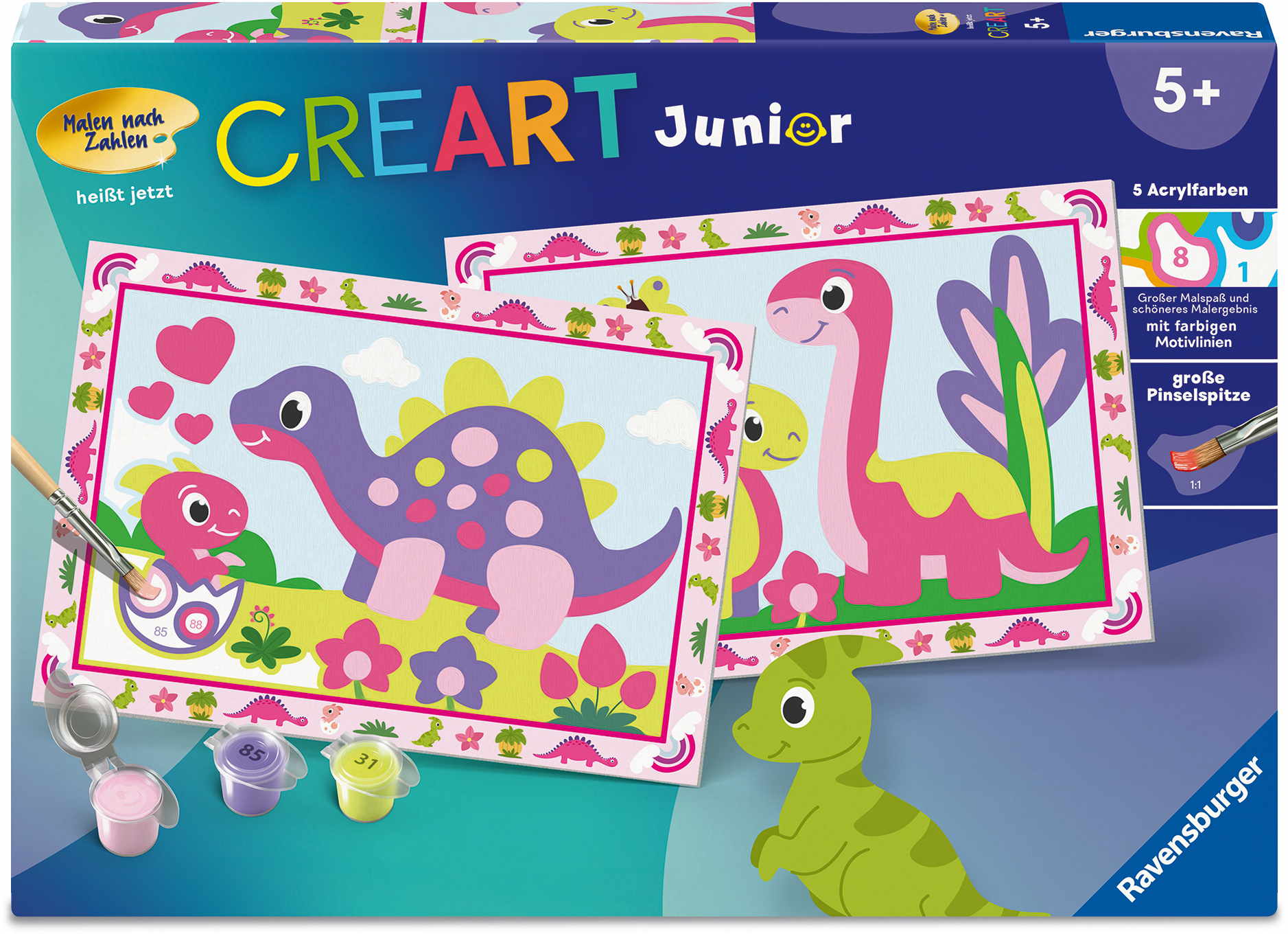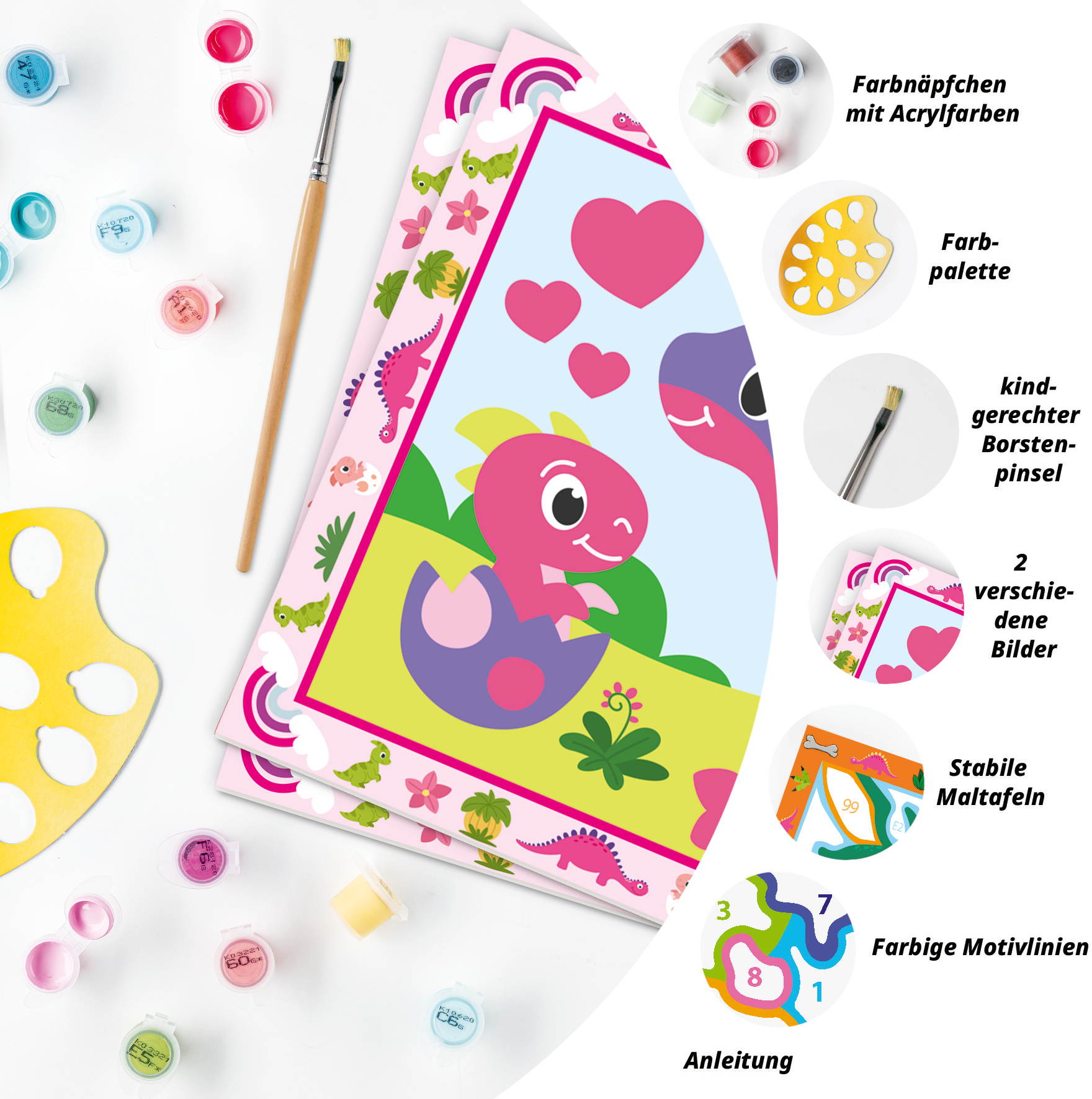 Großer Malspaß mit den Lieblingsmotiven der Kinder: Die bunten Dinos bringen Kinderaugen zum Leuchten und sind somit das ideale Geschenk für kleine und große Künstler