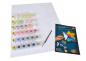 Stabiler Malkarton mit Leinenstruktur 40 x 50 cm. Exakte Konturenzeichnungen mit gut lesbaren Zahlen. Acrylfarben auf Wasserbasis. Kein Farbmischen erforderlich. Feiner Malpinsel. Kontrollblatt und ausführliche Anleitung für erfolgreiches Malen.