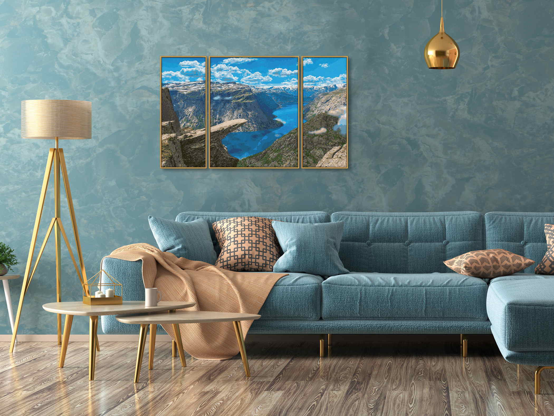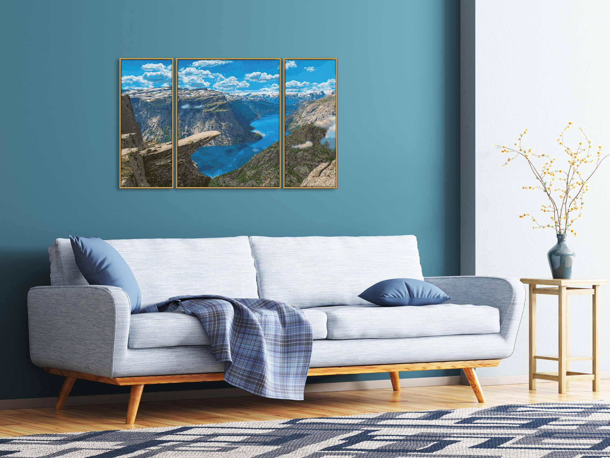 Besonderheiten: Das dreiteilige Triptychon-Format mit leinstrukturierter Maltafel (Gesamtgröße: 50 x 80 cm) sorgt für eine beeindruckende Darstellung der Landschaft. Die individuell vorgemischten Acrylfarben auf Wasserbasis ermöglichen feine Farbübergänge und eine detailgetreue Umsetzung des Motivs.