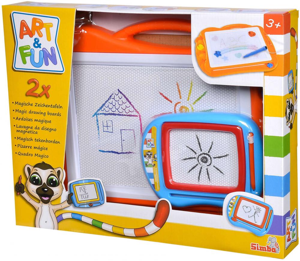 Ob zu Hause oder unterwegs, mit den zwei Art & Fun Maltafeln können kleine Picassos ihrer Kreativität freien Lauf lassen. Durch verschiedene Farbgebungen wirkt das Bild der großen Maltafel noch lebendiger und kann zusätzlich mit vier verschiedenen Stempeln verziert werden. Die Maltafeln von Simba Toys sind für Kinder ab 3 Jahren geeignet.