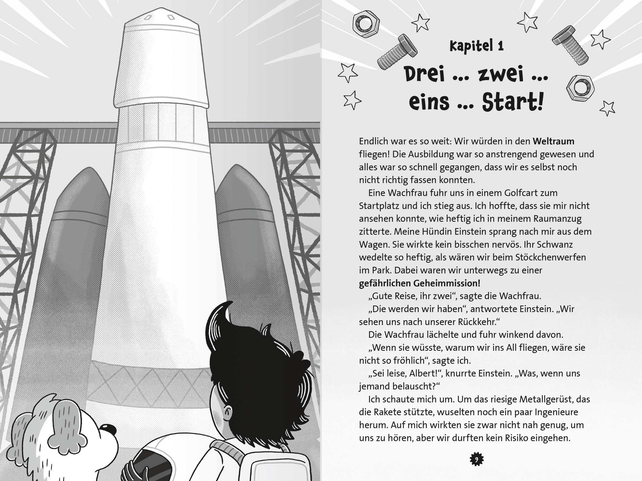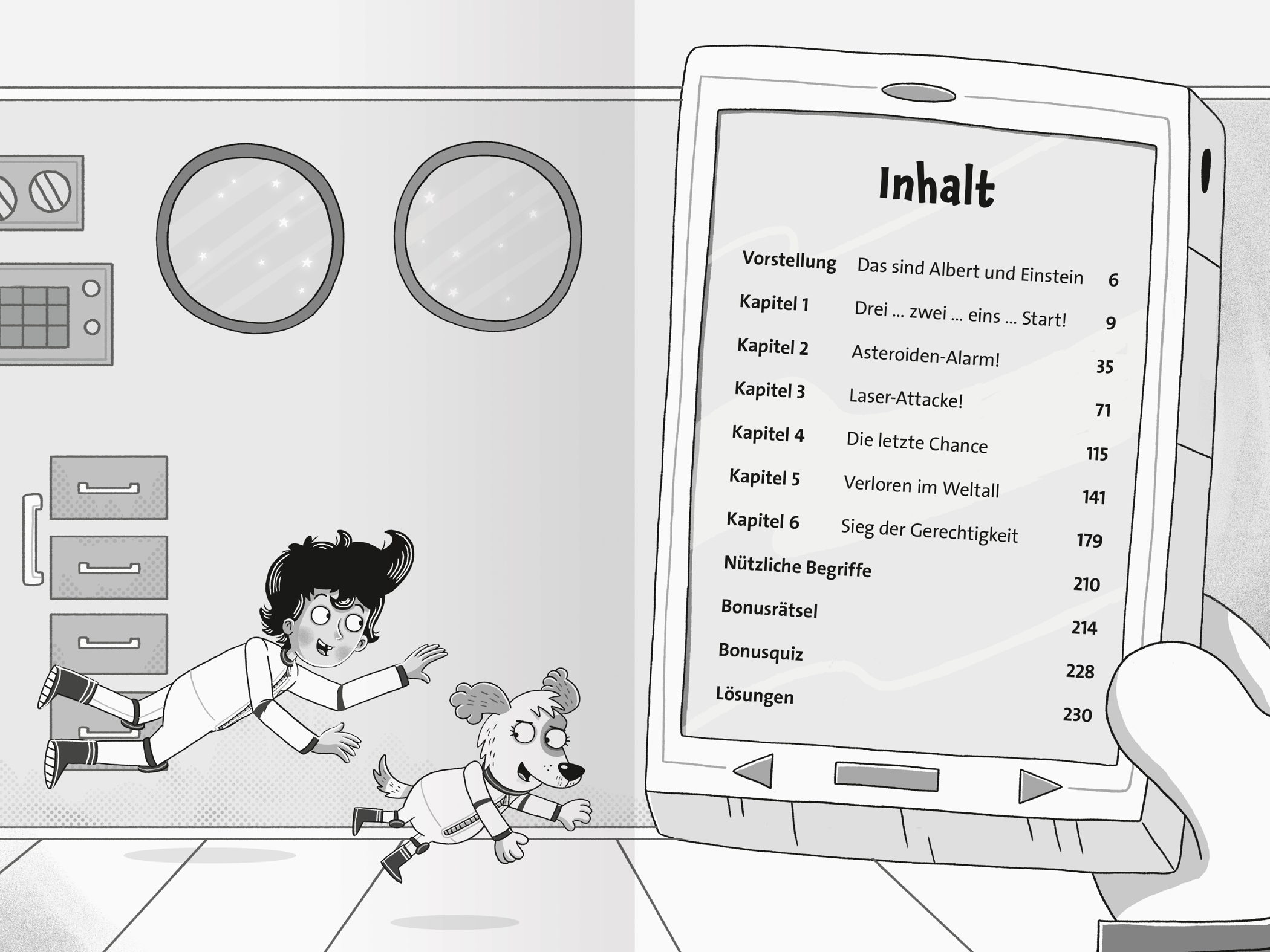 Oh nein! Ein riesiger Asteroid hat direkten Kurs auf die Erde genommen! Der begeisterte Hobbywissenschaftler Albert und seine clevere Hündin Einstein müssen ihn unbedingt aufhalten. Doch dafür brauchen sie DEINE Unterstützung. Denn eine junge Astronautin und ihre Katze tun alles dafür, euch Steine in den Weg zu legen … Ein lustiges Rätselabenteuer mit über 40 Knobelaufgaben für alle Naturwissenschafts-Fans.