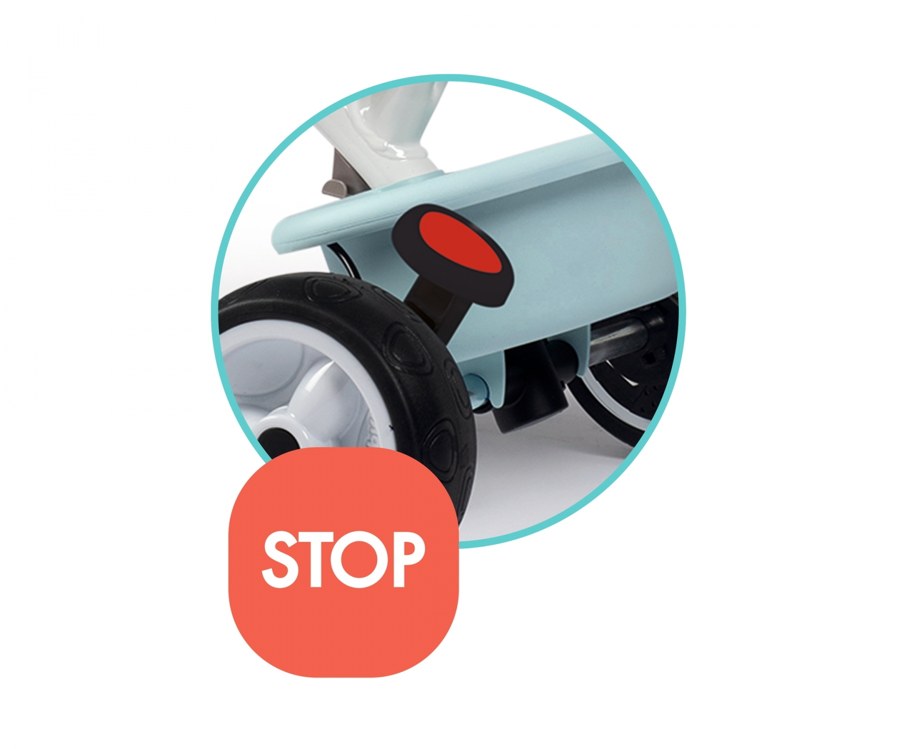 Mit dem Baby Balade von Smoby können Eltern noch leichter die Richtungsbestimmung übernehmen: das integrierte Lenksystem ermöglicht eine direkte Steuerung der Vorderräder über die Schiebestange. Das Dreirad ist mit seinem stabilen Metallrahmen und durch die umfangreiche Sicherheitsausstattung bereits für Kinder ab 10 Monaten geeignet. Der Nachwuchs sitzt bequem im ergonomisch geformten Schalensitz mit Kopfstütze und ist durch den abnehmbaren Sicherheitsring perfekt geschützt. Die zurückklappbaren Fußablagen sorgen für sicheren Halt.