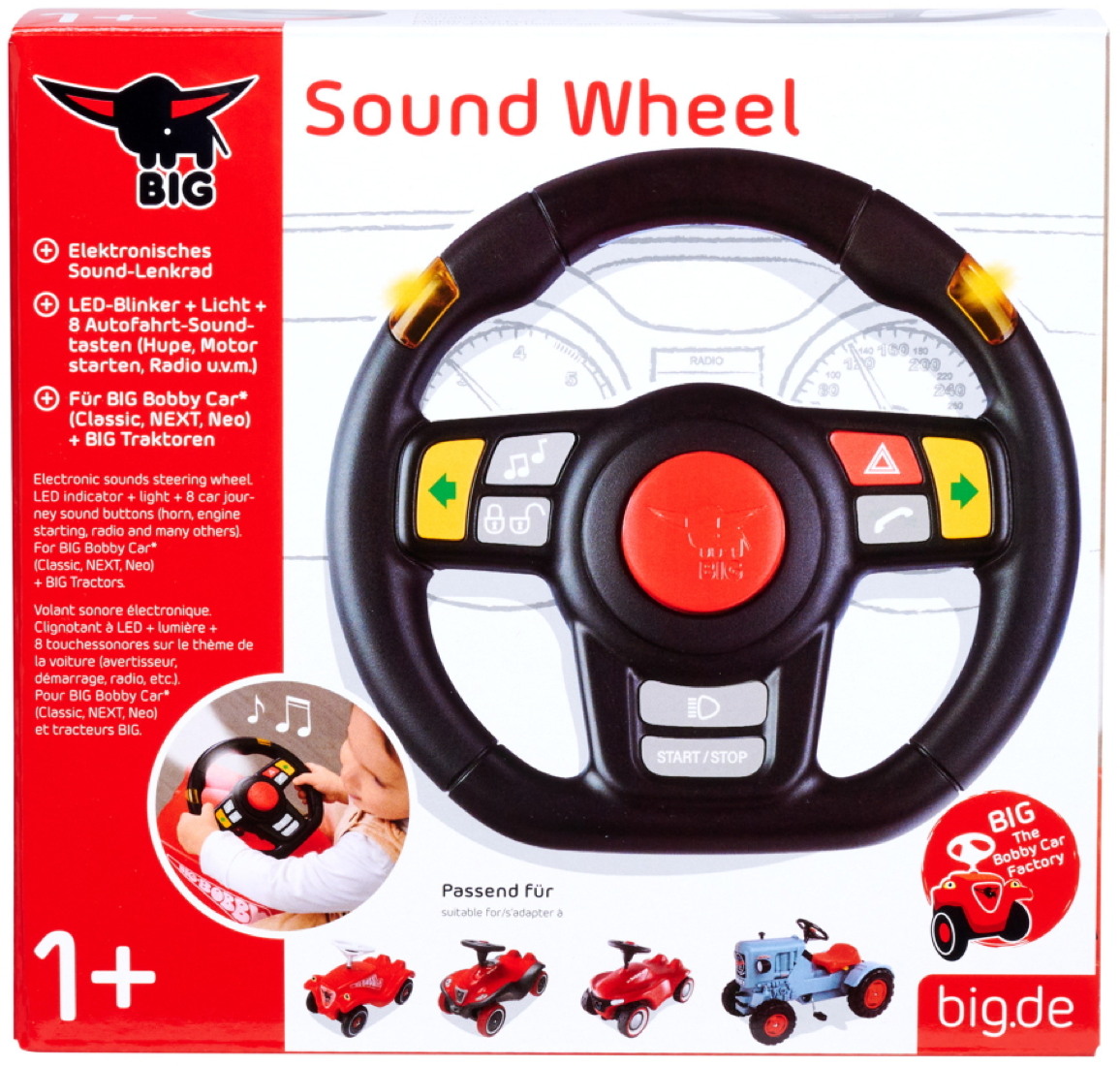 Dieses moderne Multifunktionslenkrad kommt in seiner Optik und Funktionalität den Vorbildern aus der echten Automobilwelt erstaunlich nahe und passt perfekt an alle BIG Bobby Cars und BIG Traktoren ab Baujahr 2010. Kleine Fahrerinnen und Fahrer ab 12 Monaten können sich auf eine Vielzahl realistischer Sound- und Lichteffekte freuen, die das Spielerlebnis noch aufregender und lebensechter machen.